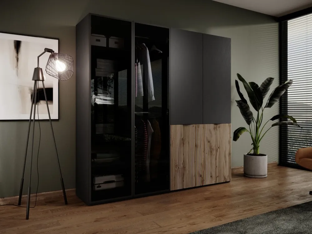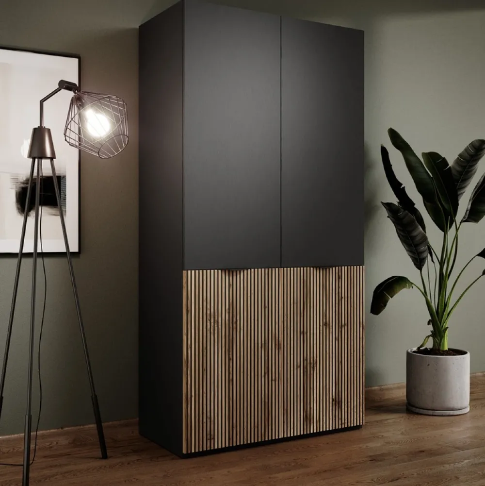 - Szafa dzięki swojej konstrukcji, oraz bliźniaczym modelom w serii doskonale sprawdza się do tworzenia gotowych zestawów, dzięki czemu szafa może mieć 101, 202, 303 cm szerokości.
