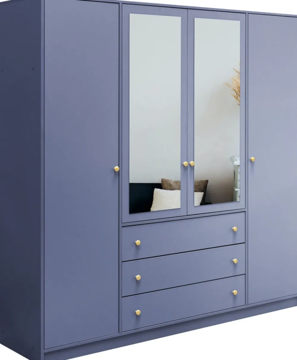 - Szafa uchylna z lustrem SELMA posiada wiele półek na ubrania oraz aluminiowy drążek na wieszaki. Trzy szuflady poruszają się na niezawodnych prowadnicach rolkowych. Szafa wykonana z płyty laminowanej 16 mm, obrzeża wykończono PCV.