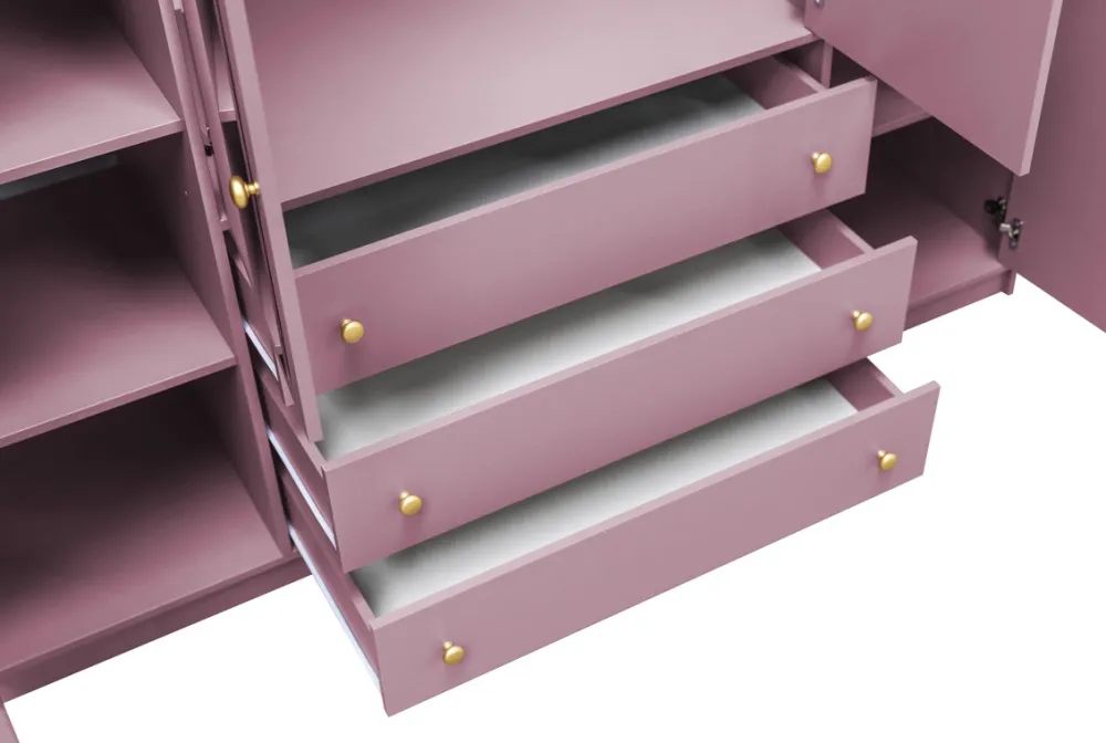 Obrzeża szafy wykończone zostały okleiną ABS, co zapewnia trwałość i odporność na codzienne uszkodzenia. To rozwiązanie, które sprawia, że mebel będzie wyglądał doskonale przez lata, nawet przy intensywnym użytkowaniu.