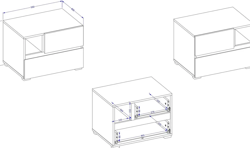 - Szafka nocna posiada możliwość montażu z wnęką po lewej lub prawej stronie.
