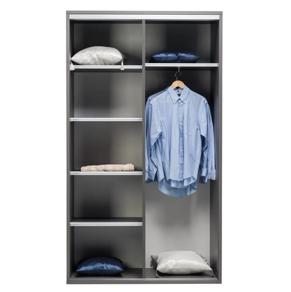 Na zewnątrz, ta szafa przyciąga uwagę swoją minimalistyczną elegancją. Przesuwne drzwi zapewniają łatwy dostęp do zawartości, nawet w najbardziej ograniczonym przestrzennie pokoju. Ponadto okleina ABS gwarantuje trwałość i odporność na zarysowania, zapewniając, że szafa pozostanie w idealnym stanie przez długie lata.