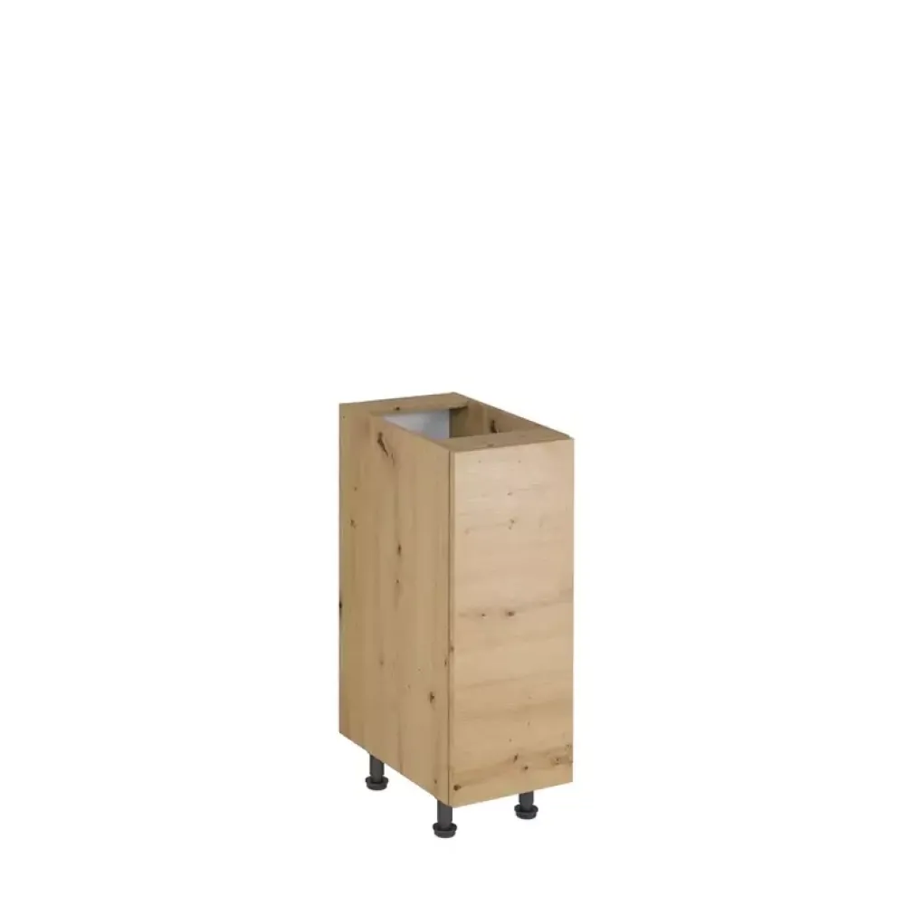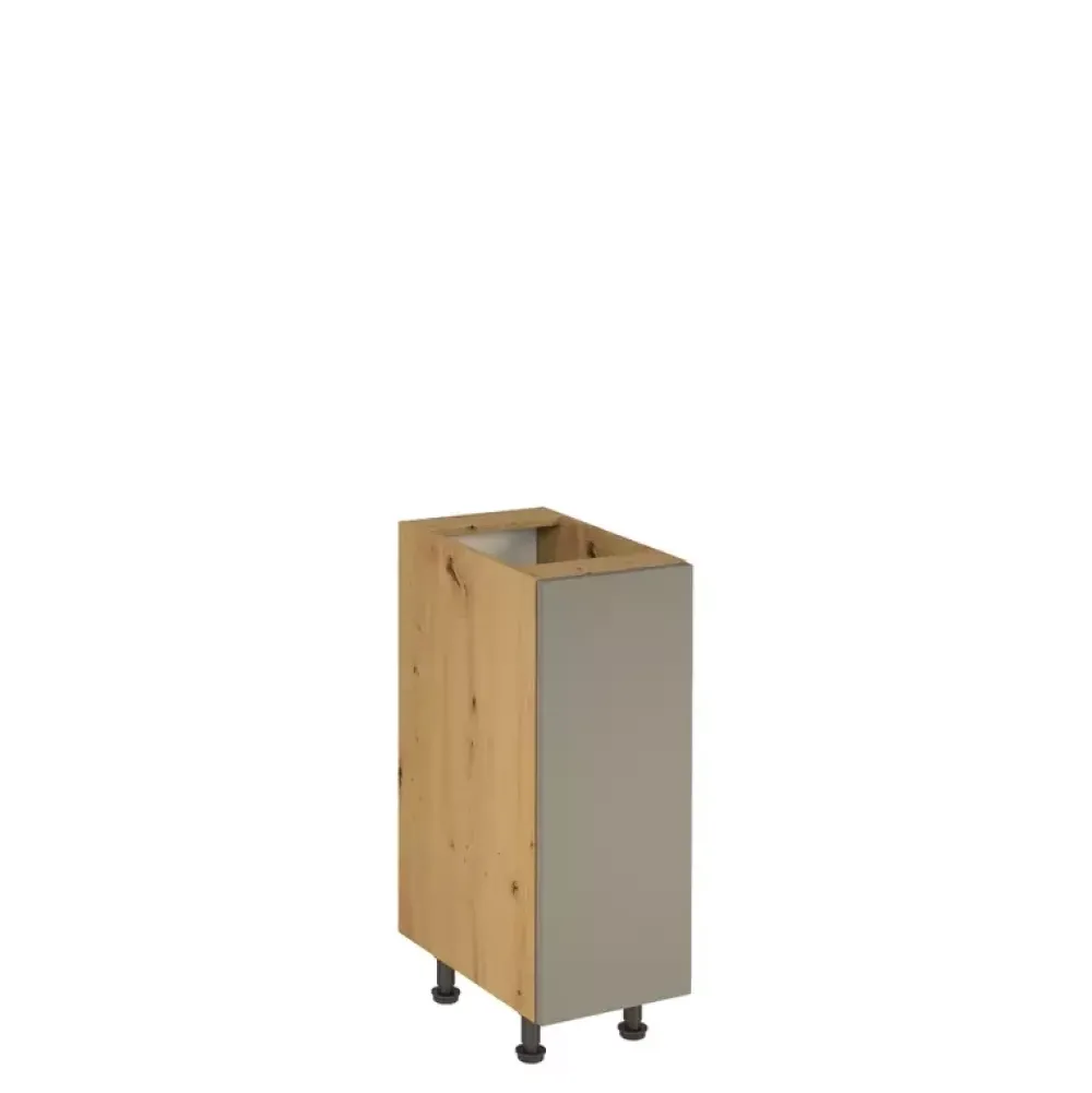 - Dolna szafka kuchenna ma korpus w kolorze dąb artisan i trzy kolory frontów do wyboru w konfiguratorze „Dopasuj i kup”.