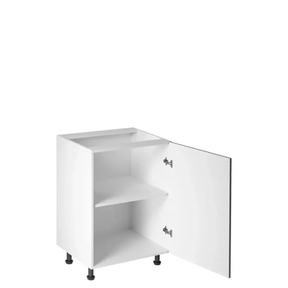 Szafka kuchenna LATERANI posiada 60 cm szerokości w skład których wchodzą drzwi umieszczone na regulowanych zawiasach z cichym domykiem i uchwytami wykonanymi z metalu w kolorze czarnym. Za drzwiami szafki znajdują się dwa poziomy, które doskonale sprawdzą się do umieszczenia rozmaitych akcesoriów kuchennych i przypraw. Dodatkowo nowoczesna stylistyka szafki sprawia, że doskonale sprawdza się we współczesnych aranżacjach kuchennych.