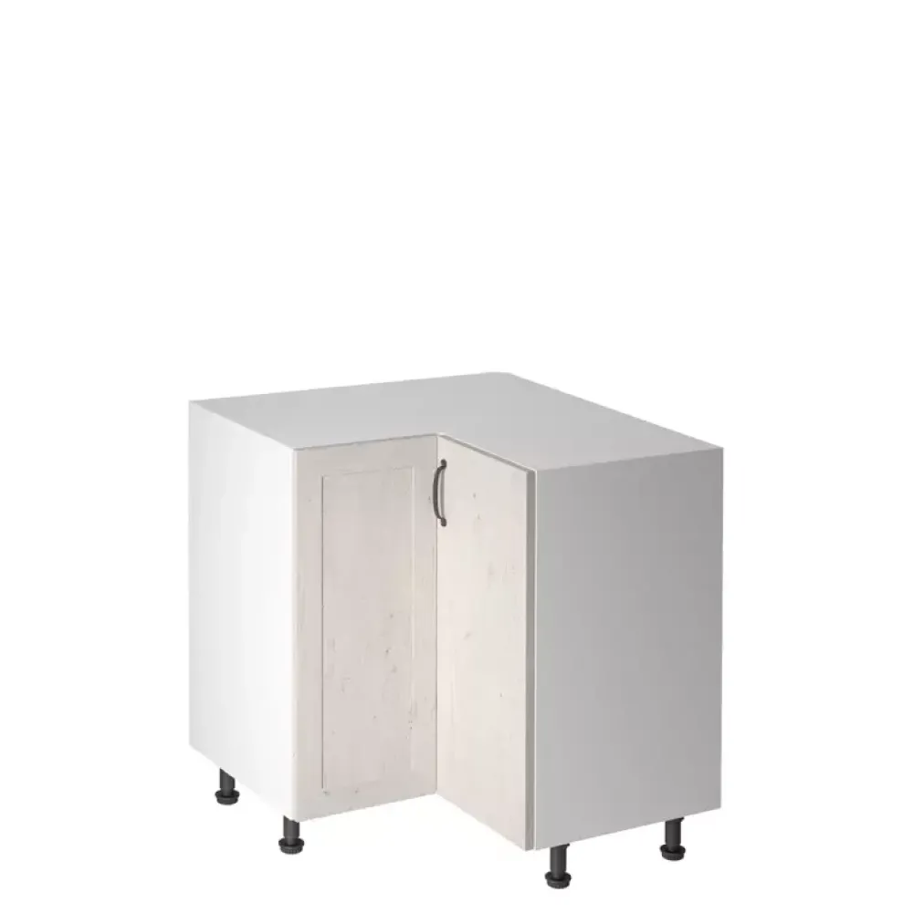 Szafka kuchenna narożna ROZANELI została wyposażona w parę drzwi umieszczonych na regulowanych zawiasach puszkowych z cichym domykiem, za którymi znajduje się półka. Dodatkowo posiada metalowe uchwyty w kolorze złota, które uszlachetniają konstrukcję. Szafka poprzez swój praktyczny kształt doskonale sprawdzi się do zagospodarowania rogu pomieszczenia, dzięki czemu zaoszczędzisz dodatkowe miejsce.