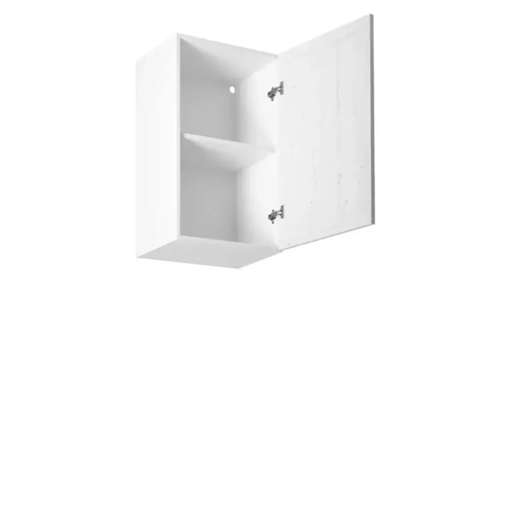 - Szafka kuchenna PARCELIO posiada 45 cm szerokości, oraz drzwi umieszczone na zawiasach z cichym domykiem, za którymi znajduje się półka. Dodatkowo szafka posiada metalowe uchwyty w kolorze czarnym.