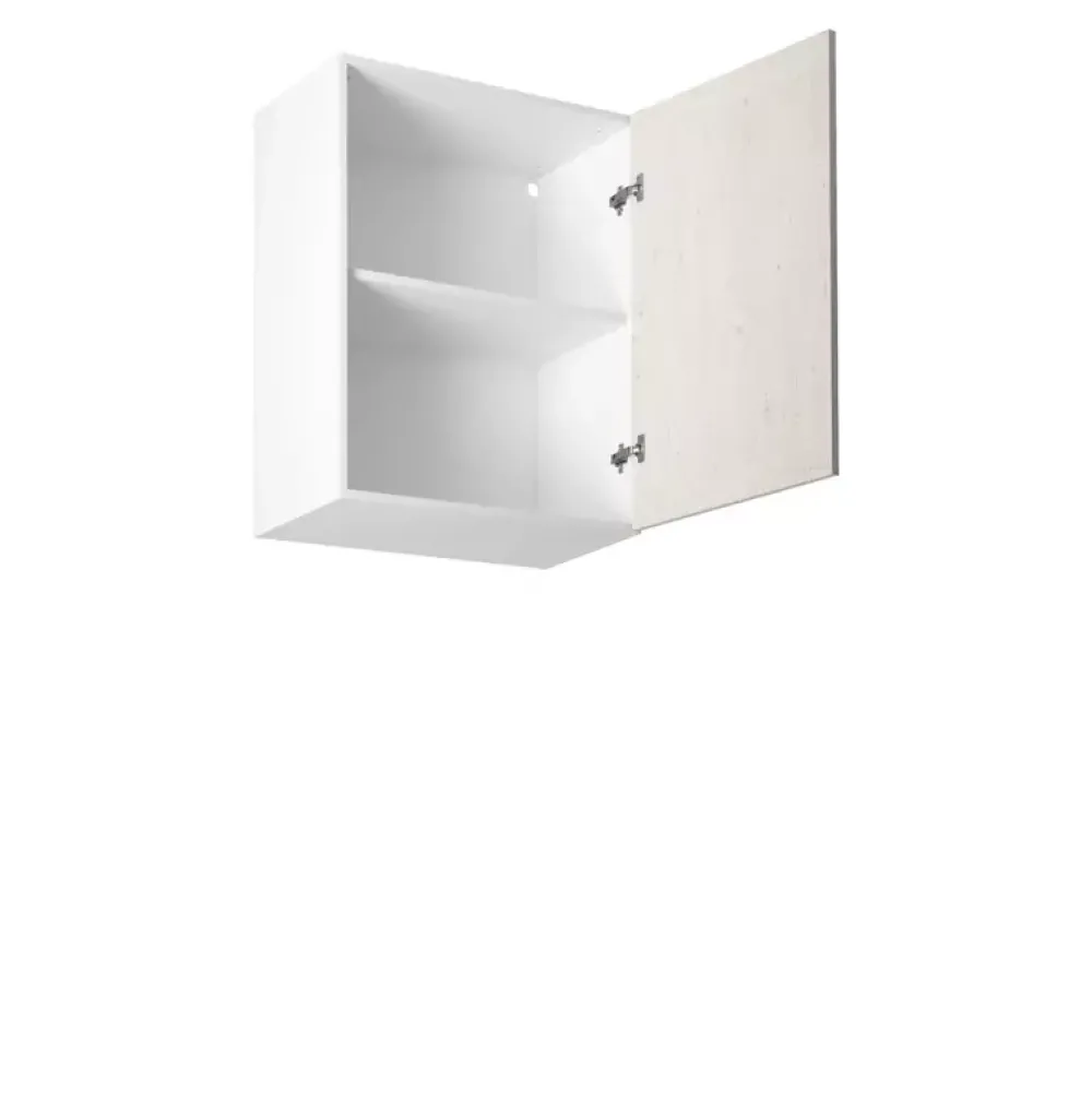 Szafka kuchenna ROZANELI posiada 60 cm szerokości w skład których wchodzą drzwi frontowe umieszczone na zawiasach puszkowych z cichym domykiem, za którymi znajduje się półka. Szafka dzięki wykonaniu w stonowanej stylistyce uczyni twoją kuchnię ciepłą oraz bardzo przytulną. Dodatkowo szafka posiada solidne uchwyty wykonane z metalu w czarnym kolorze.