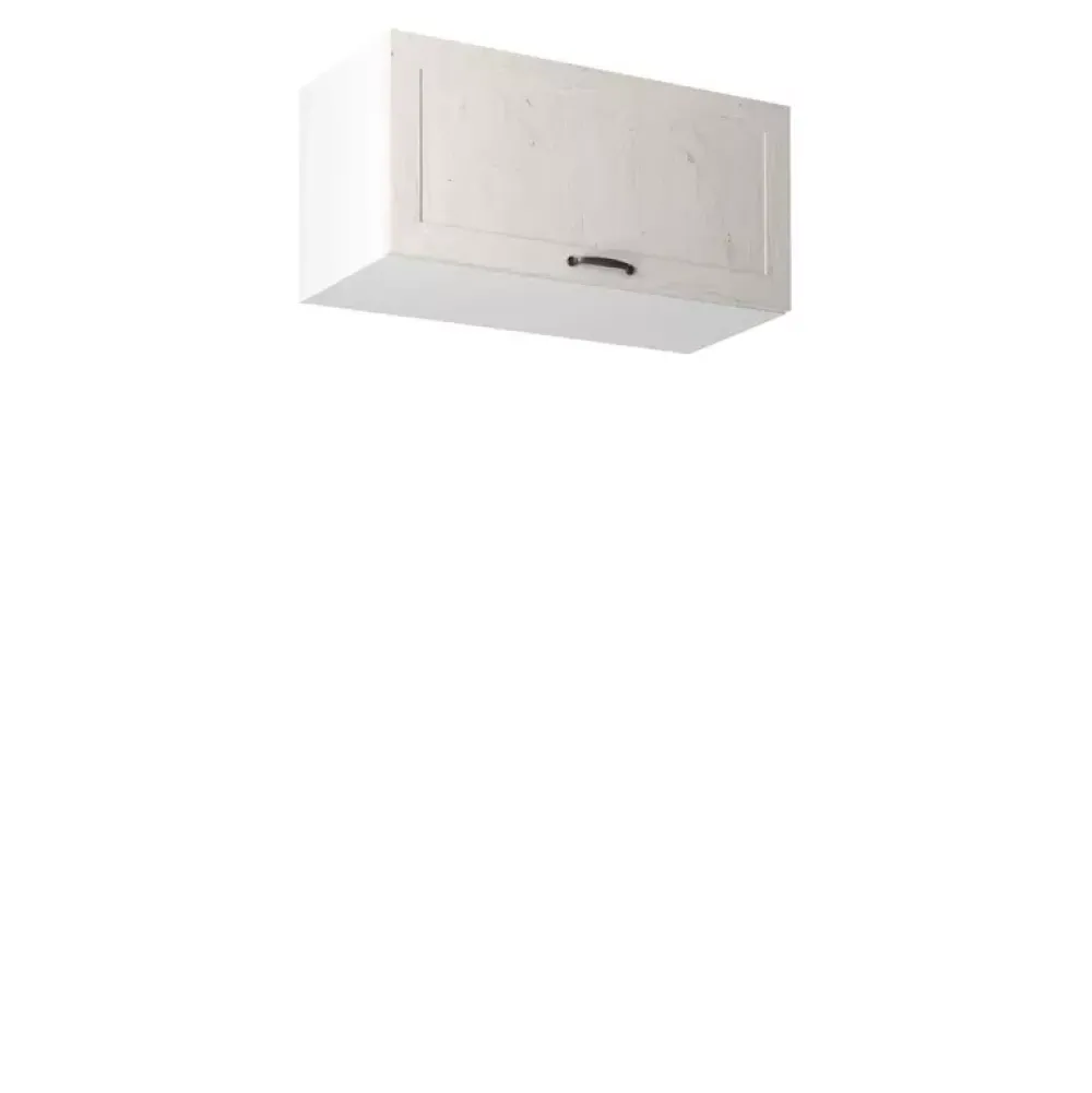Szafka kuchenna ROZANELI posiada 80 cm szerokości w skład których wchodzą drzwi uchylne umieszczone na podnośnikach gazowych, dzięki którym zyskasz szybki oraz prosty dostęp do umieszczonych za nimi akcesorów kuchennych. Szafka dzięki wykonaniu w stonowanej stylistyce uczyni twoją kuchnię ciepłą oraz bardzo przytulną. Dodatkowo szafka posiada solidne uchwyty wykonane z metalu w czarnym kolorze.