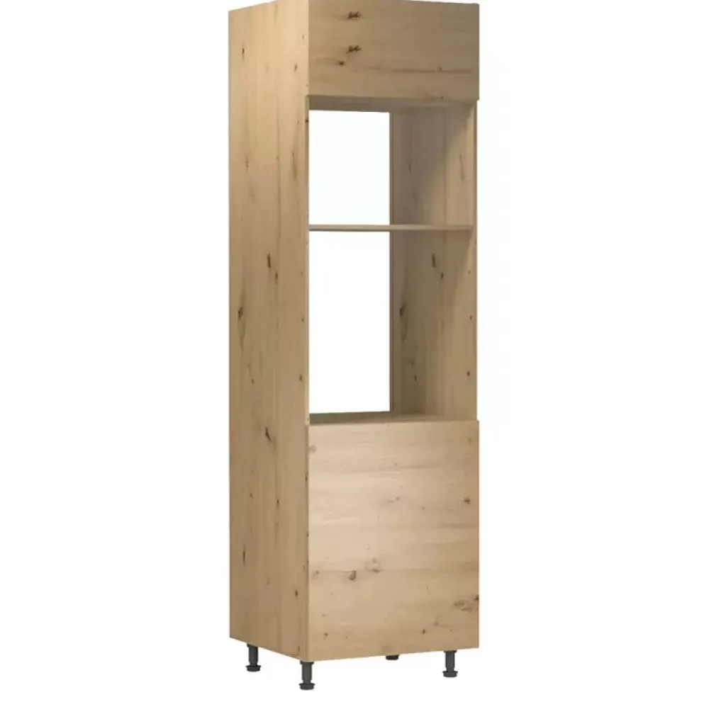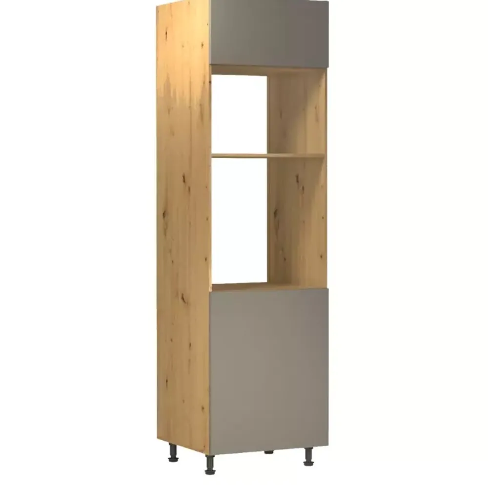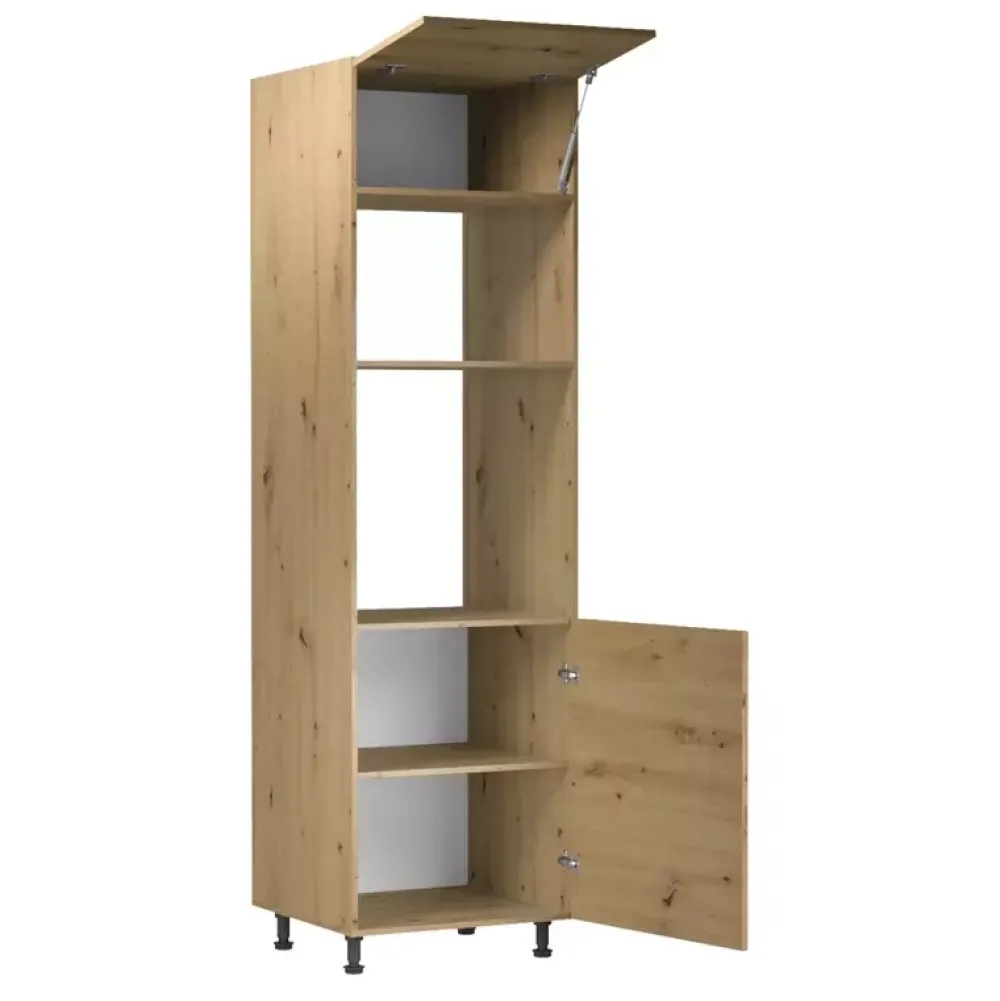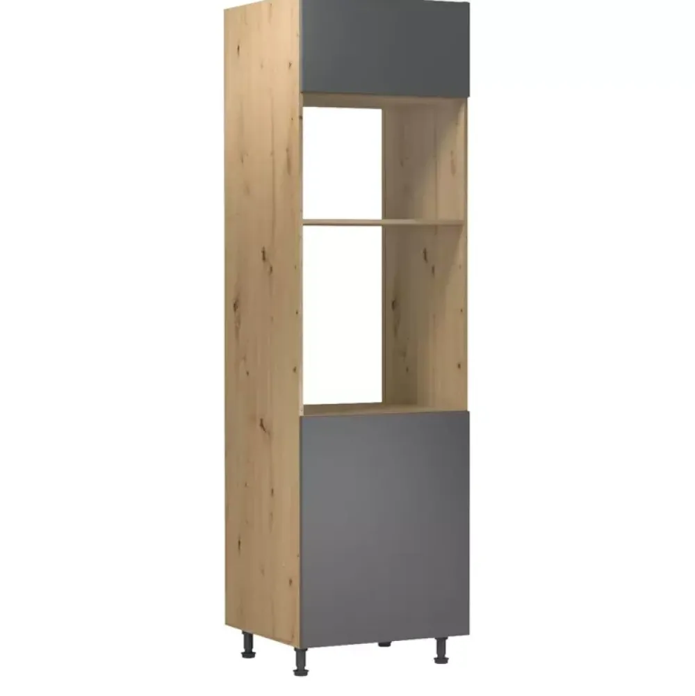 - Wysoka szafka stojąca ma 60 cm szerokości i jest przeznaczona pod zabudowę piekarnika i mikrofali. Słupek kuchenny ma korpus w kolorze dąb artisan i trzy kolory frontów do wyboru w konfiguratorze „Dopasuj i kup”.
