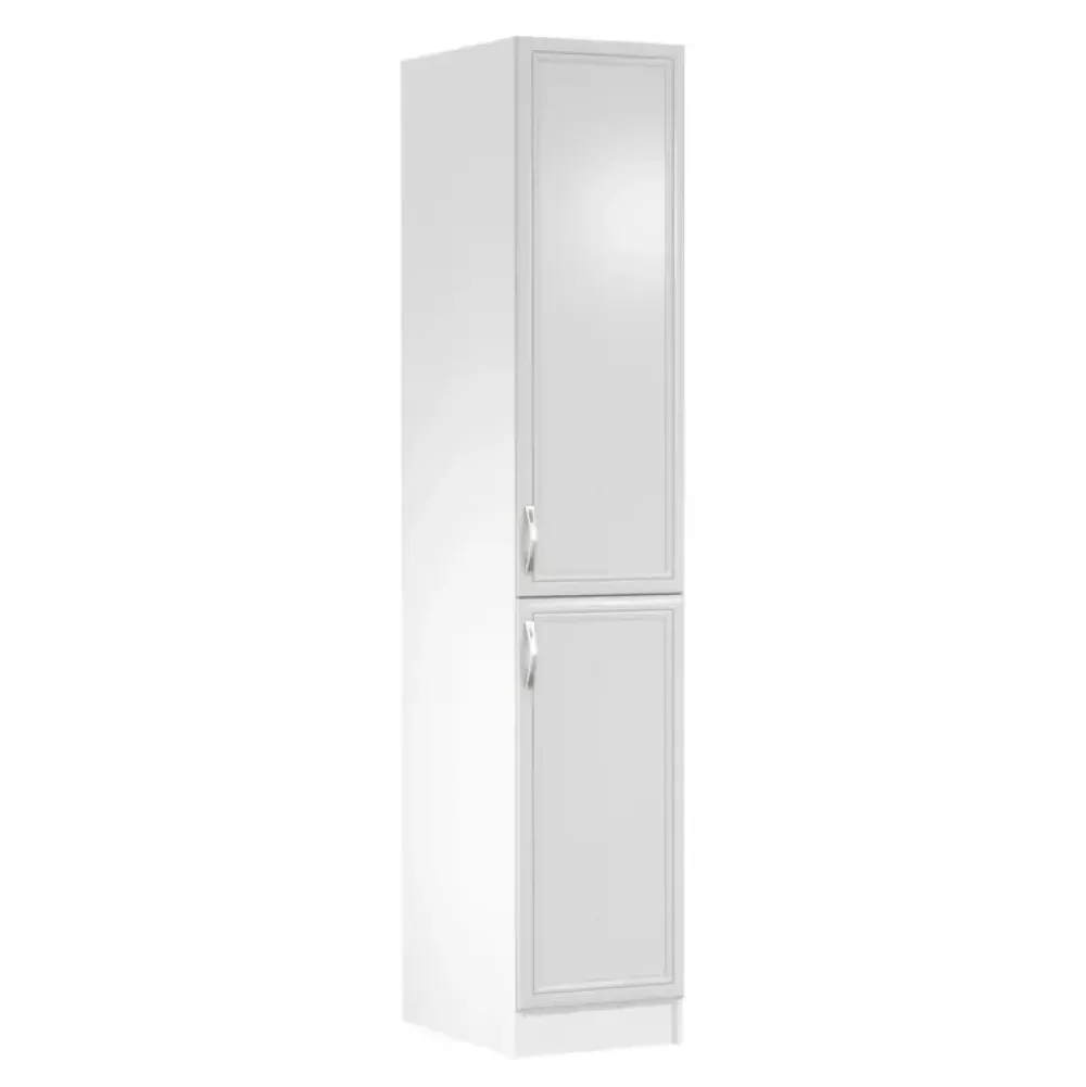 Szafka kuchenna wysoka SENILIA to propozycja która posiada parę drzwi, a za nimi cztery obszerne półki, które doskonale sprawdzą się do zagospodarowania nich rozmaitymi słoikami czy niezbędnymi akcesoriami lub naczyniami. Szafka dzięki wykonaniu frontów w eleganckiej oraz ponadczasowej stylistyce doskonale sprawdza się w klasycznych aranżacjach kuchennych.