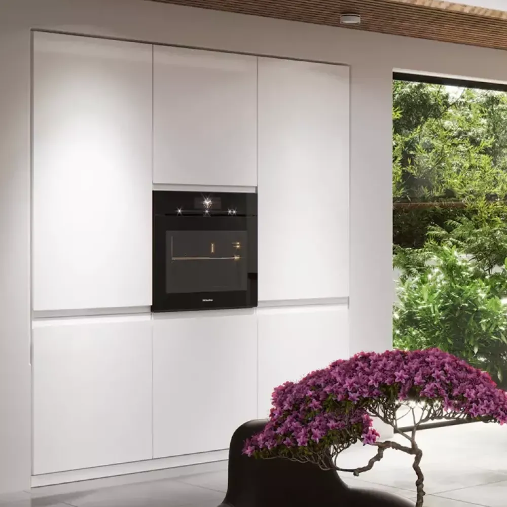 - Zestaw białych mebli kuchennych ACELSIO składa się z dwóch wysokich szafek kuchennych o szerokości 60 cm, które skrywają za sobą cztery półki oraz szafki pod piekarnik z półką za drzwiami u góry oraz szufladą typu cargo u dołu.