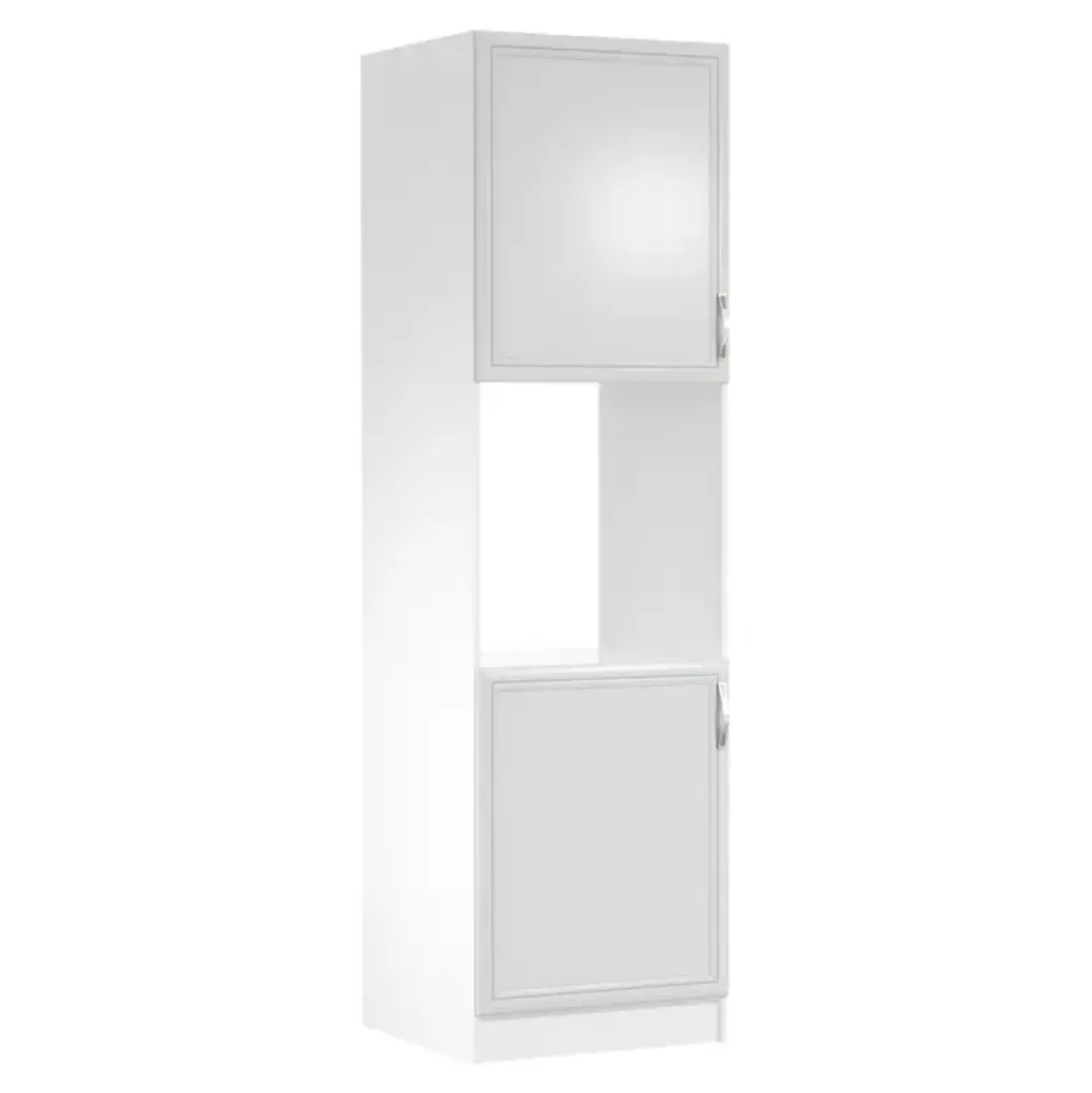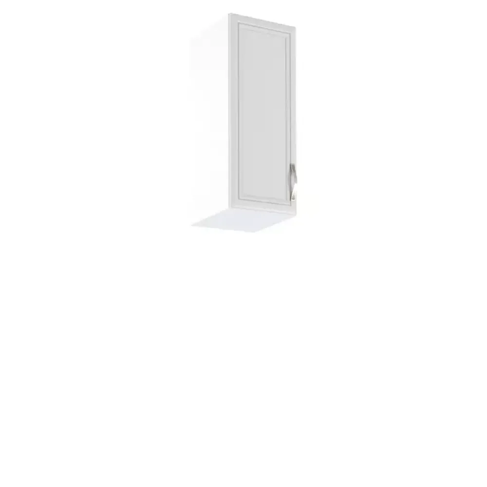 Zestaw mebli kuchennych SENILIA to propozycja wykonana w ponadczasowej oraz eleganckiej stylistyce która doskonale sprawdza się w klasycznych aranżacjach kuchennych. W zestawie swoje miejsce znalazła dwudrzwiowa szafka pod zabudowę lodówki, obok której znajduje się szafka z drzwiami u góry za którymi jest półka, pod nią wnęka na piekarnik oraz szafka z półką u dołu. Nie zabrakło również szafek wiszących, w składzie których znalazła się szafka narożna z półką, dwie szafki o szerokości 30 cm oraz szafka dwudrzwiowa z ociekaczem, która doskonale sprawdzi się do umieszczenia naczyń po myciu. Natomiast u dołu znalazła się szafka narożna z półką, szafka pod zlewozmywak 60 cm, za drzwiami której możesz umieścić kosz na śmieci oraz front zmywarki 713×596 mm. Nie zabrakło również szafki z trzema szufladami oraz dwóch szafek z szufladą u góry oraz szafką pod nimi, za drzwiami której znajduje się półka.