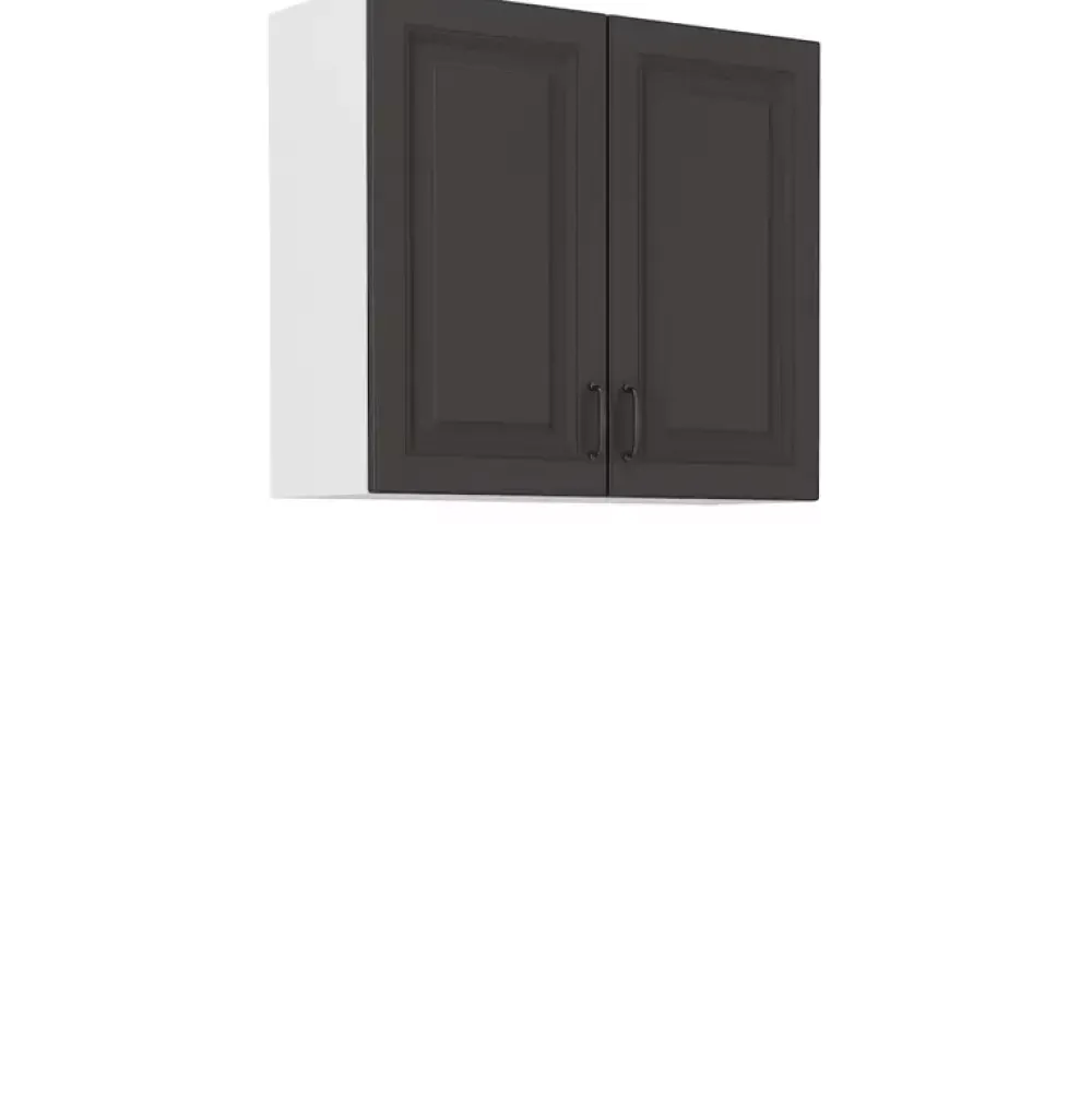 - Szafki posiadają czarne, metalowe uchwyty, jednak możesz zamontować w nich inne, ponieważ otwory na uchwyty wiercone są nieprzelotowo.