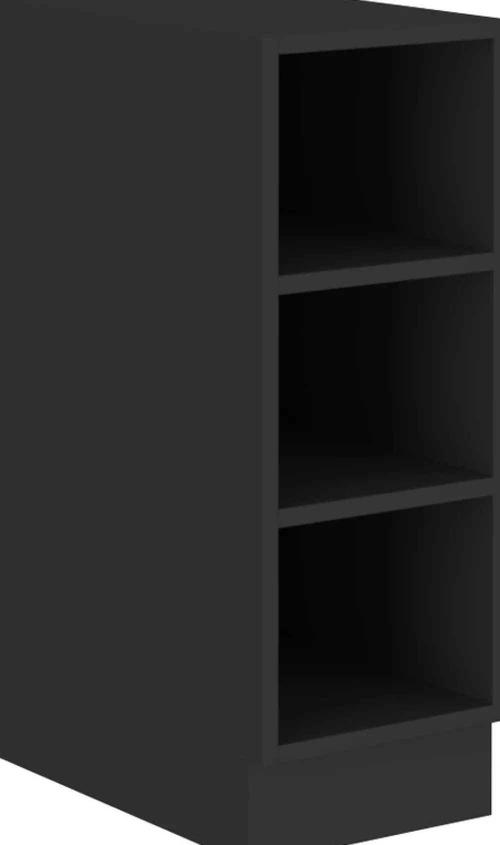 Nasza otwarta szafka kuchenna w głębokim, matowym odcieniu czerni z pewnością będzie wyraźnym akcentem Twojej kuchni, stanowiąc świetne miejsce na różne dekoracje i dodatki.