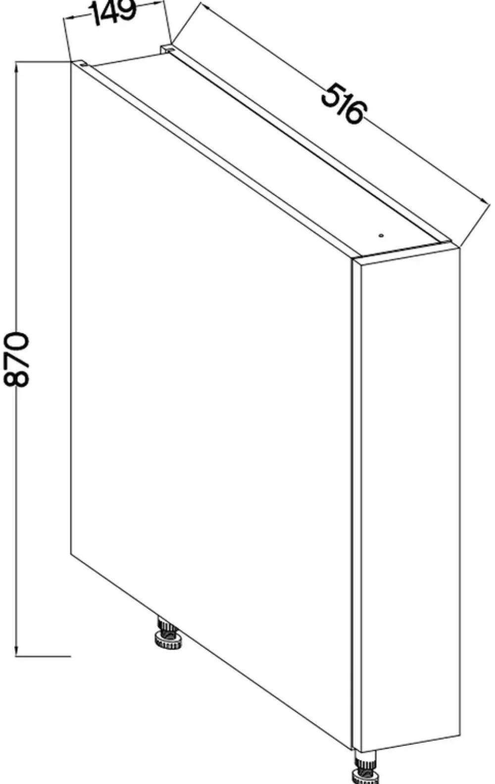 - Nóżki pod zabudowę cokołem z tworzywa sztucznego oraz możliwością regulacji w zakresie 13,5-16 cm.