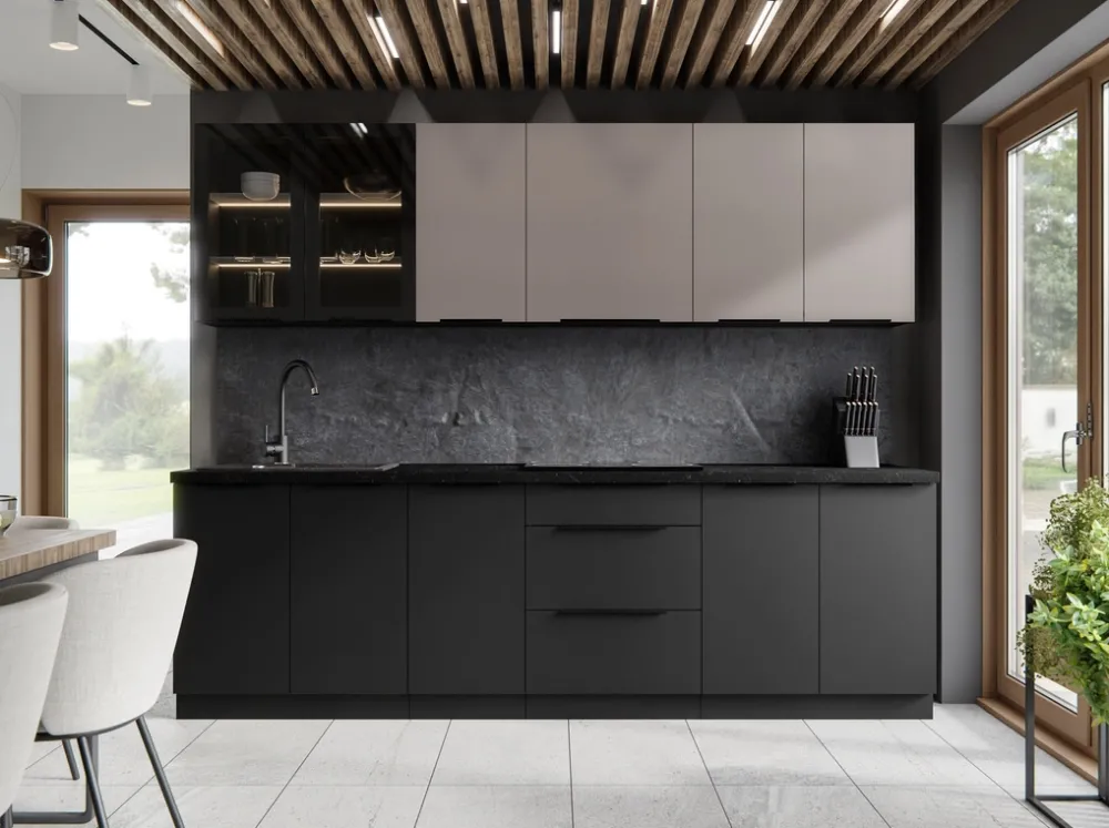 - Dolne szafki w kolorze czerni, natomiast górne szafki w kolorze kaszmiru.