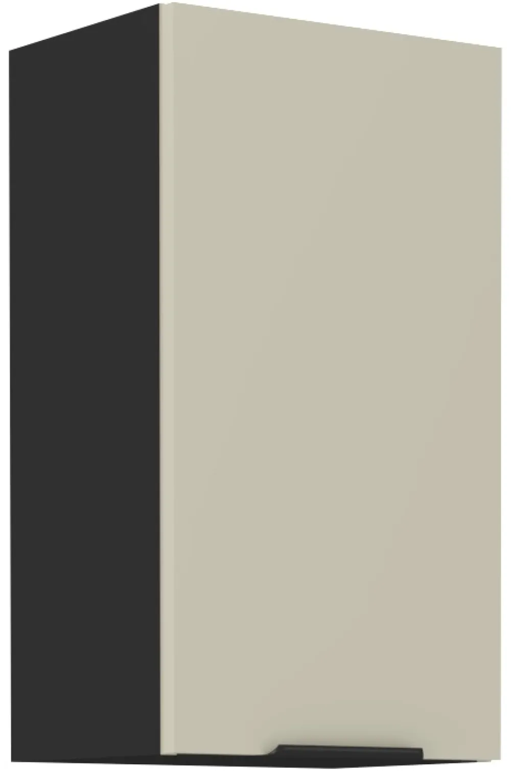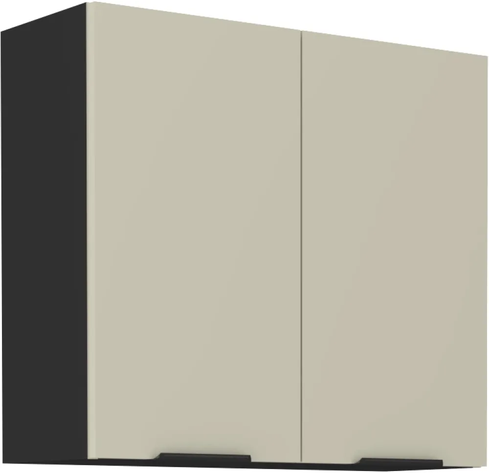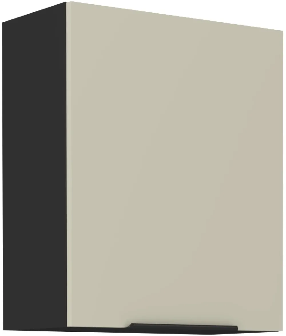 To, co wyróżnia meble kuchenne z tego zestawu to połączenie koloru kaszmiru z głęboką czernią. Nadaje to wnętrzu elegancji i współczesnego designu.