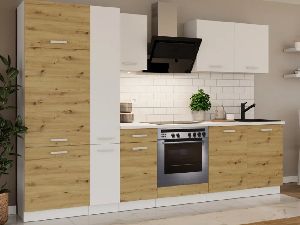 Kompletując zestaw, nie mogło zabraknąć eleganckiego blatu oraz cokołu. Dzięki nim otrzymasz gotowy i w pełni funkcjonalny zestaw kuchenny gotowy do przygotowywania smacznych posiłków.