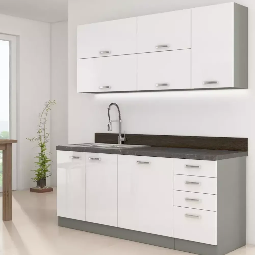 - Kuchnia Blanka sprawdzi się w mniejszej kuchni, ponieważ jej szerokość w konfiguracji jak na zdjęciu wynosi 180 cm biorąc pod uwagę kuchenkę gazową, piekarnik czy zmywarkę.
