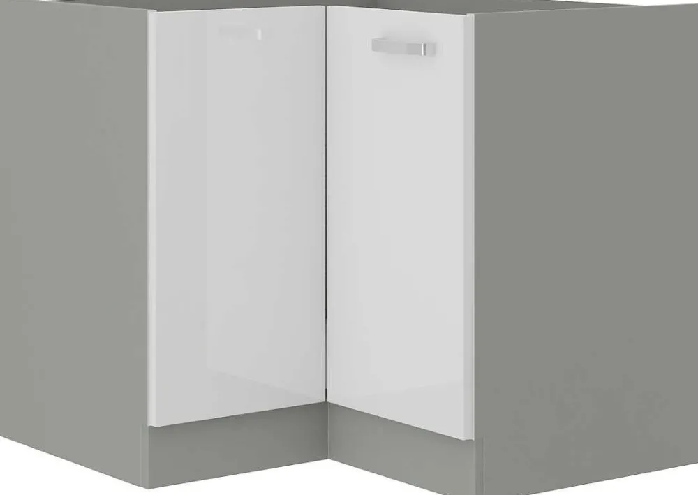- Korpus: płyta laminowana 16mm Szary platynowy. Front: MDF 16mm Biały połysk PET
