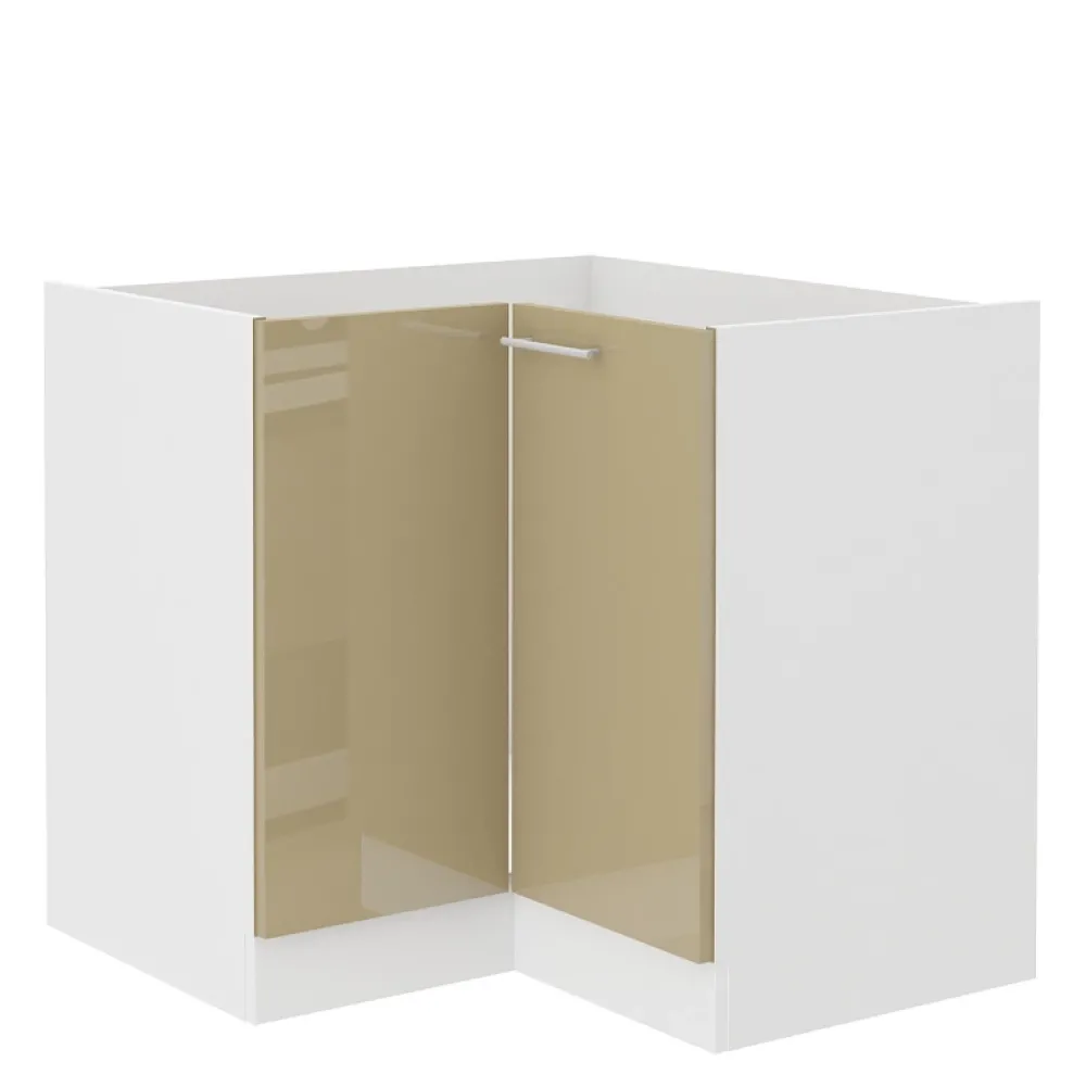 - Front szafki kuchennej wykonany jest z płyty MDF w trzech kolorach wykończonych na wysoki połysk: biały, szary oraz cappucino.