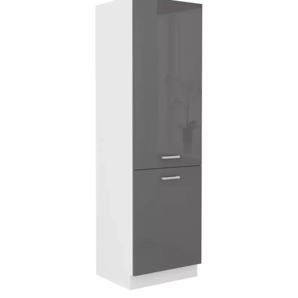Nowoczesne kuchnie cechuje ogromna różnorodność i dowolność, jednak to szare meble kuchenne cieszą się bardzo dużą popularnością, ponieważ dopasują się do każdego wnętrza. Fronty szafek wykonane są z płyty MDF o grubości 16 mm w kolorze grafit połysk, natomiast korpusy z płyty laminowanej wykończonej obrzeżem melaminowym w kolorze białym. W kolekcji zastosowano uchwyty z tworzywa sztucznego w kolorze aluminium, które wprowadzą oryginalny i elegancki charakter do wnętrza kuchni.