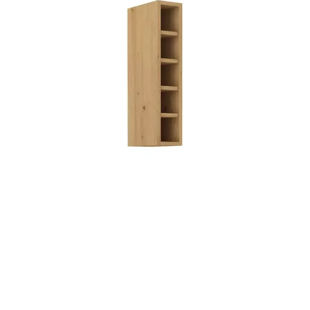 Wisząca szafka kuchenna AWINION ma 15 cm szerokości i posiada cztery półki z płyty laminowanej, więc zyskasz dużo miejsca na przyprawy lub inne przedmioty, których potrzebujesz w zasięgu ręki. Wybierz odpowiadający Ci kolor korpusu, klikając przycisk „Dopasuj i kup”.