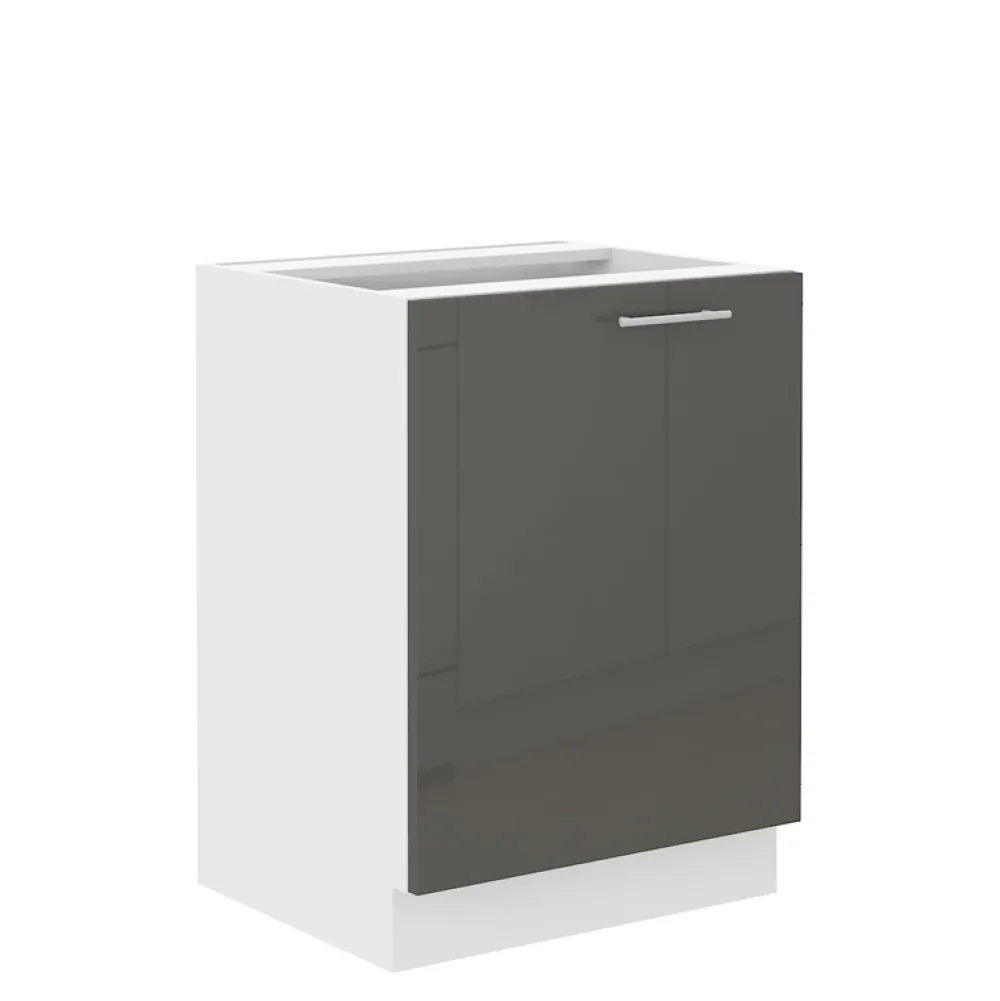 Stojąca szafka kuchenna z półką ma 60 cm szerokości.