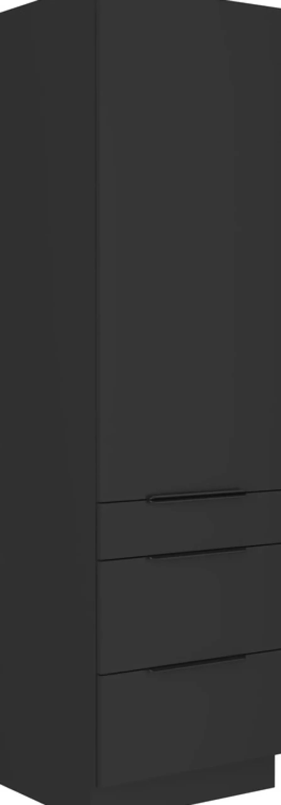 - Słupek kuchenny 60 cm SELENA wyposażony został w trzy szuflady z cichym domykiem. Szafka w kolorze czarnym wykonana została w całości z płyty laminowanej. Uchwyty aluminiowe. Obrzeża zabezpieczone melaminą (korpus) i okleiną ABS (fronty).