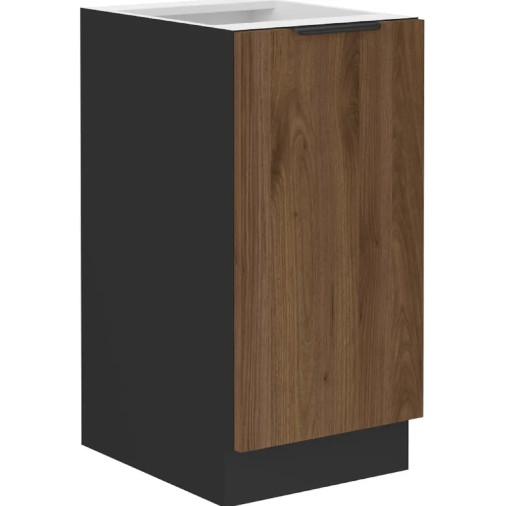 - Szafka kuchenna MARGARET o szerokości 40 cm. Wykonana została z płyty laminowanej o grubości 16 mm. Uchwyty aluminiowe w kolorze czarnym. Za drzwiami skrywa się półka. Obrzeża frontów zabezpieczone są przed uszkodzeniami okleiną ABS.