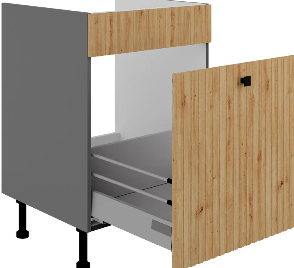 - Nóżki pod zabudowę cokołem z tworzywa sztucznego oraz możliwością regulacji w zakresie 13,5-16 cm.