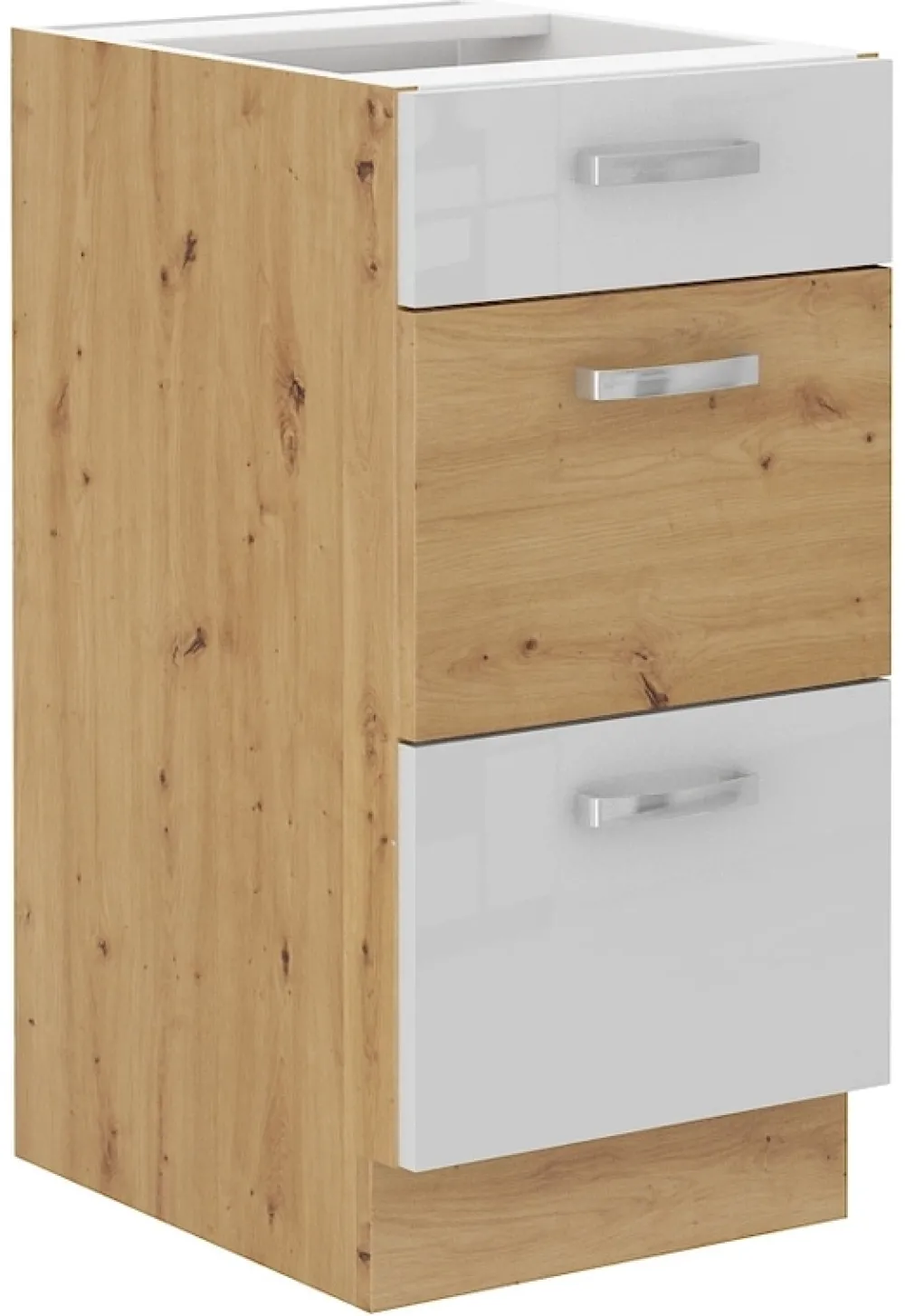 - Stojąca szafka kuchenna z szufladami PREMIUM BOX o szerokości 40 cm AGATA. Szafka kuchenna wykonana została z płyty laminowanej o grubości 16 mm. Szafka w kolorze dąb artisan/biały.