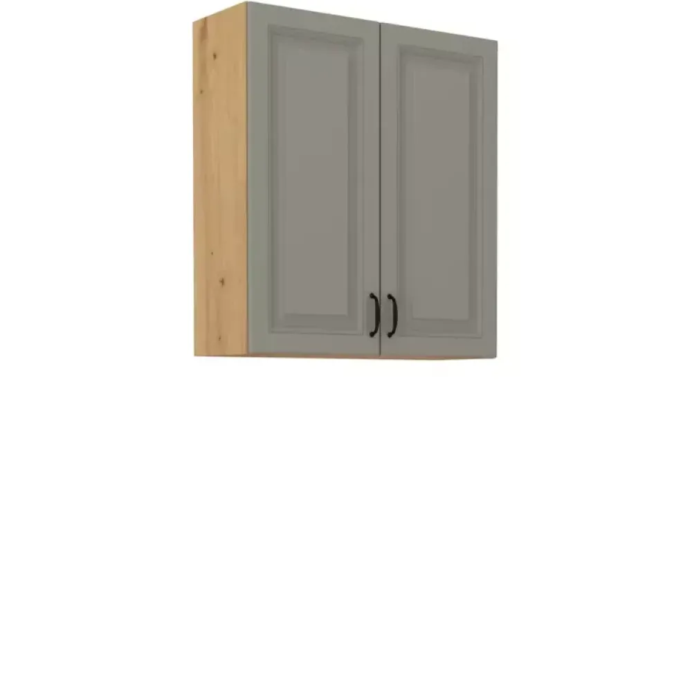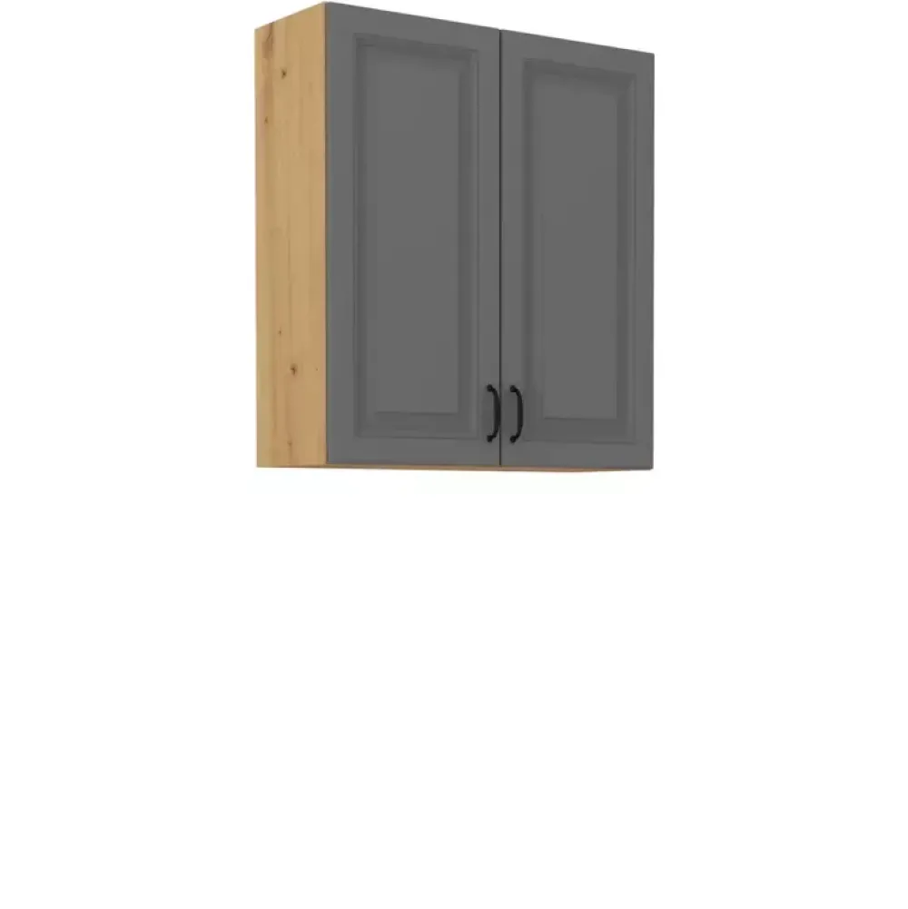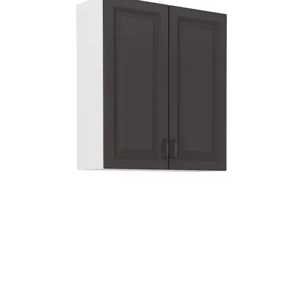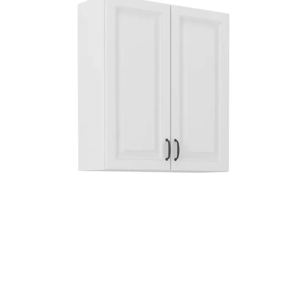 - Wisząca szafka kuchenna dwudrzwiowa o szerokości 80 cm i wysokości 90 cm została wyposażona w trzy półki.