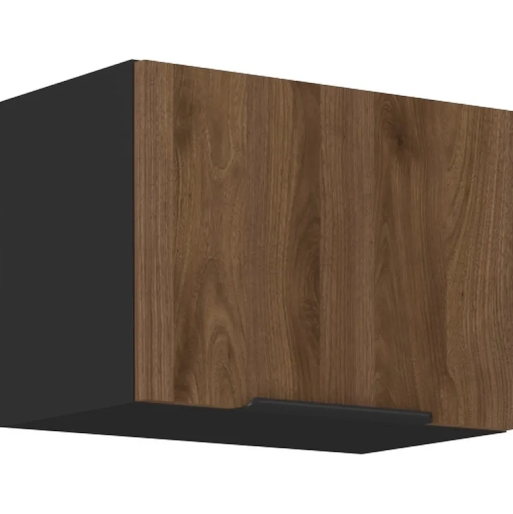 - Wisząca uchylna szafka kuchenna 50 cm MARGARET zapewni Ci łatwy dostęp do kuchennych akcesoriów i umili codzienne gotowanie. Wykonana została z płyty laminowanej o grubości 16 mm. Front w kolorze orzechu okapi. Uchwyt z aluminium w kolorze czarnym.