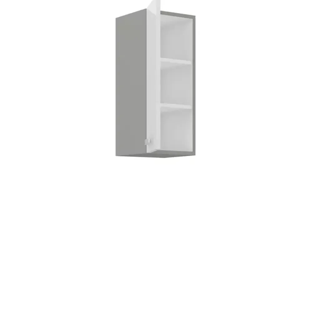 Wisząca szafka kuchenna jednodrzwiowa o szerokości 30 cm wyposażona w dwie półki