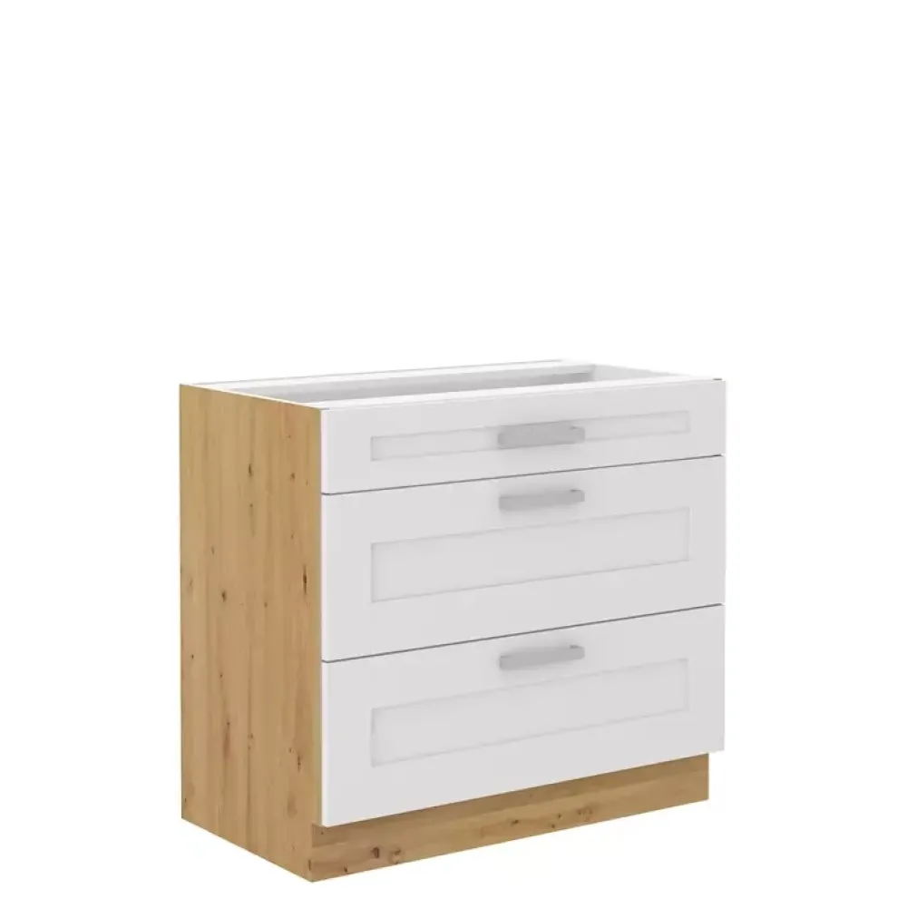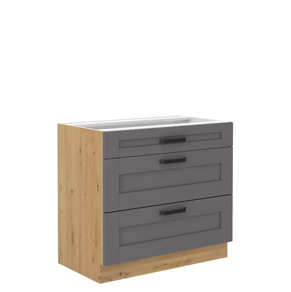 - Szafka stojąca ma 80 cm szerokości i posiada trzy pojemne szuflady typu premium box. Kliknij „Dopasuj i kup” i wybierz wersję kolorystyczną, jaka najbardziej Ci się spodoba.