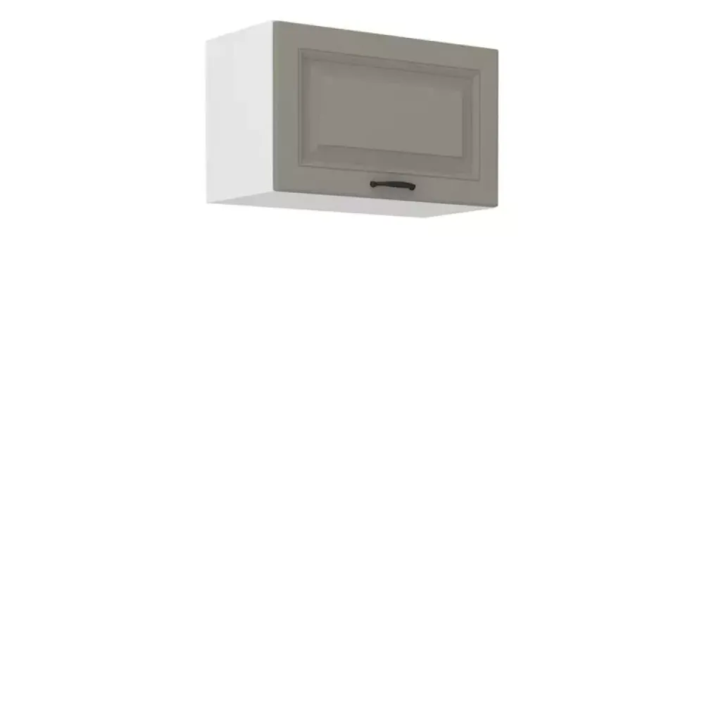 Kuchenna szafka nad okap z frontem uchylanym do góry. Szafka nad okap nie posiada wewnątrz półek, a jej atutem są siłowniki gazowe, które gwarantują łatwy dostęp do wnętrza szafki. Możesz zawiesić tę szafkę nad szafkami wysokości 72 lub 90 cm z kolekcji STYLE i stworzyć zabudowę pod sufit. Wybierz odpowiadający Ci kolor korpusu i frontów, klikając przycisk „Dopasuj i kup”.