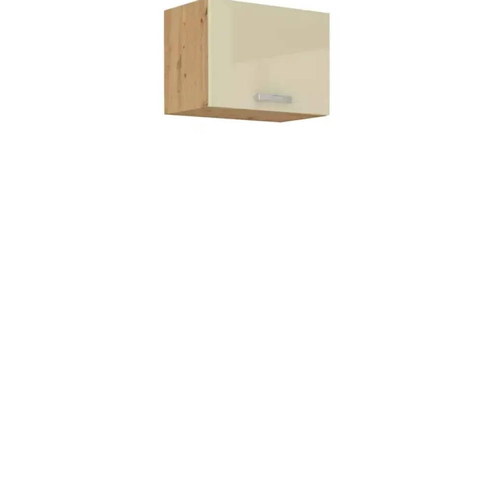 - Korpus: płyta laminowana 16mm Dąb Artisan. Front: – MDF 16mm Krem połysk / płyta laminowana Dąb Artisan
