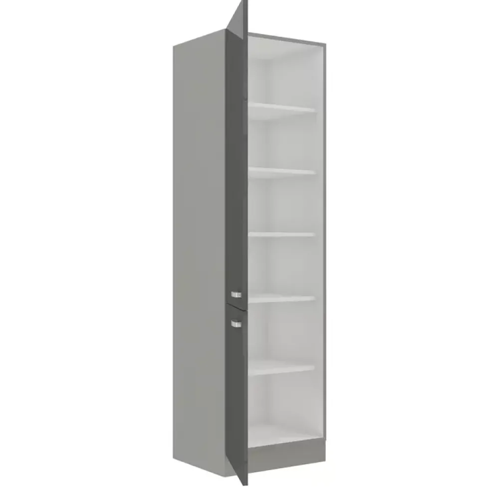 - Korpus: płyta laminowana 16mm Szary platynowy. Front: MDF 16mm Szary połysk PET