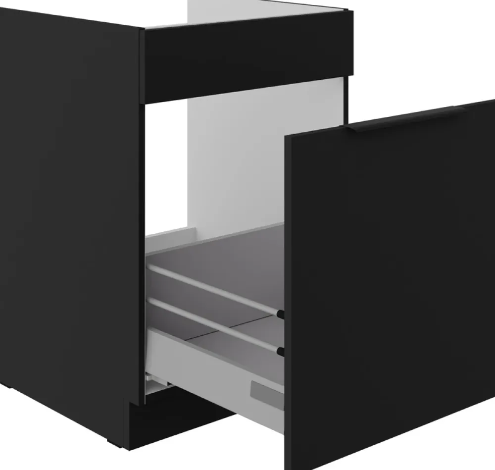 Nasza szafka w głębokim, matowym odcieniu czerni z pewnością będzie wyraźnym akcentem Twojej kuchni, stanowiąc doskonałe tło dla metalowych lub jasnych akcesoriów.