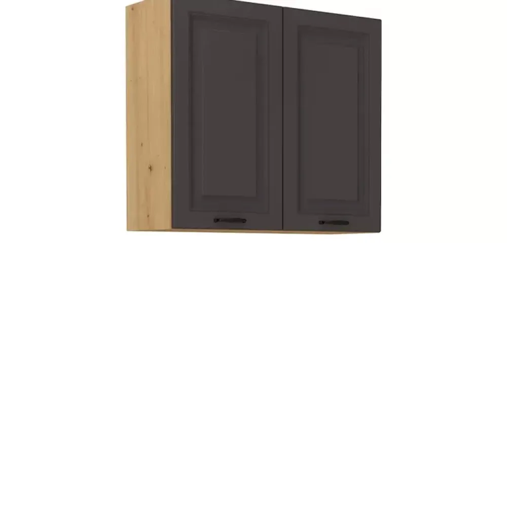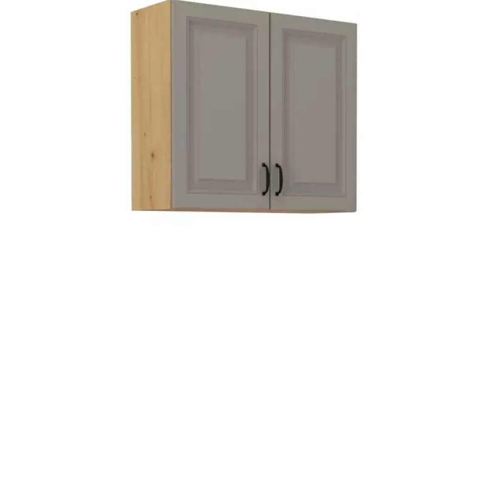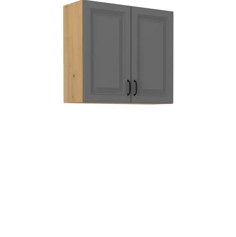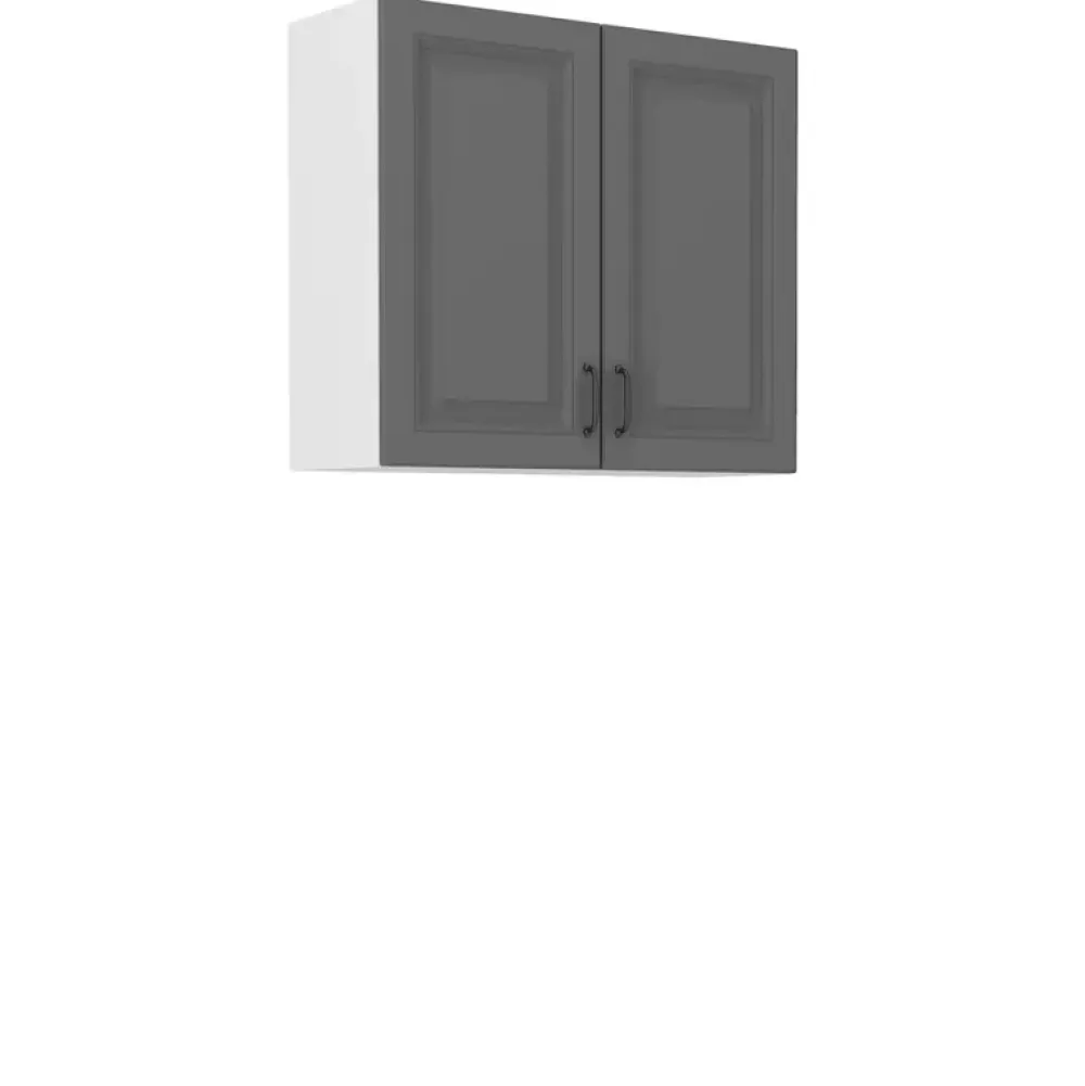 - Wisząca szafka kuchenna dwudrzwiowa ma 80 cm szerokości i posiada dwie półki.