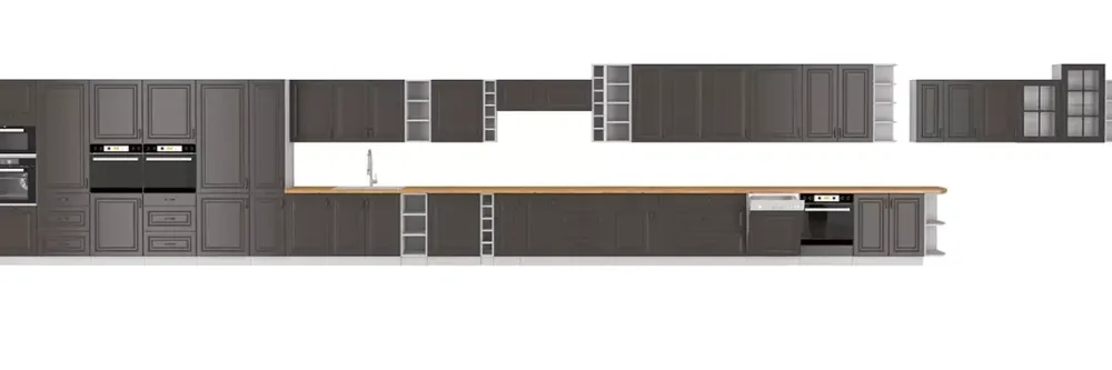 Wisząca szafka kuchenna wyposażona w dwie półki będzie świetnym miejscem na ulubione przyprawy, które będziesz mieć zawsze pod ręką, ponieważ szafka nie ma drzwi. Wybierz odpowiadający Ci kolor korpusu klikając przycisk „Dopasuj i kup”.