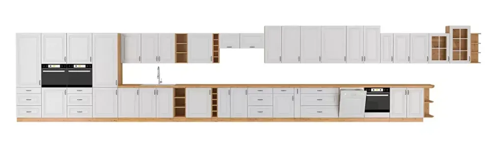 - Szafka z systemem CARGO o szerokości 15 cm w kolorze białym, utrzymana w stylu prowansalskim.