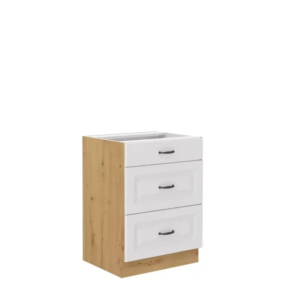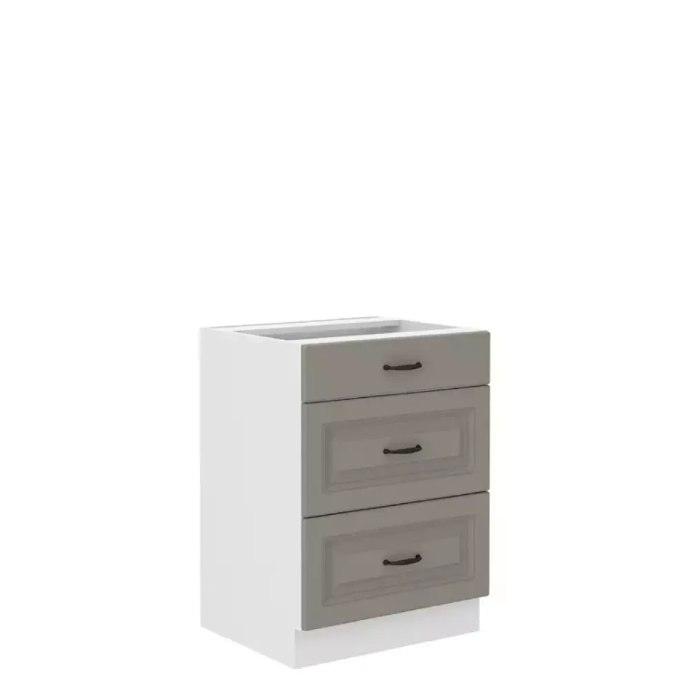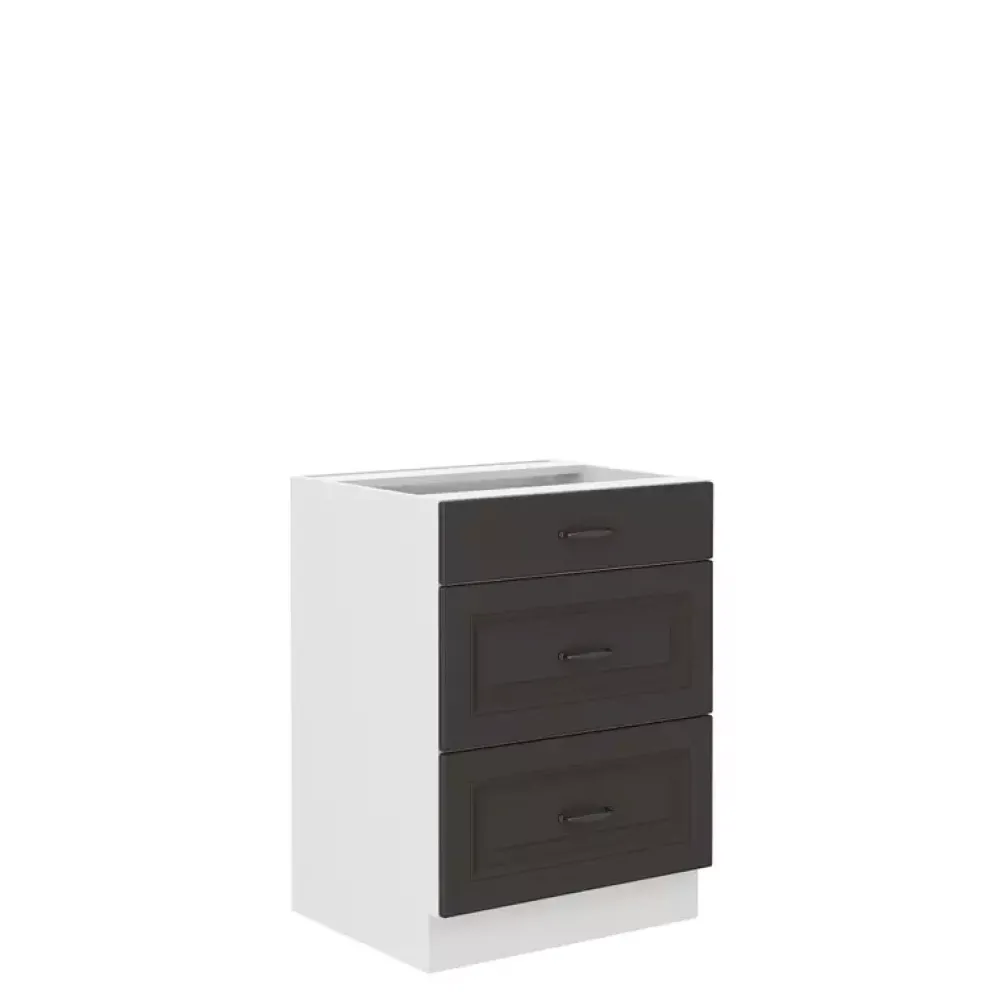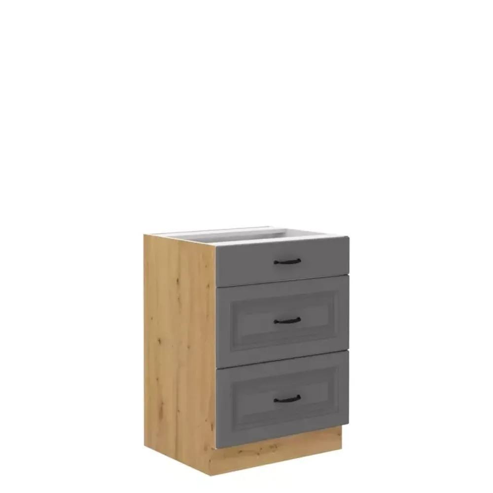 - Szafka kuchenna z szufladami ma 60 cm szerokości. Szafkę z trzema pojemnymi szufladami doposażyć możesz we wkład do sztućców.