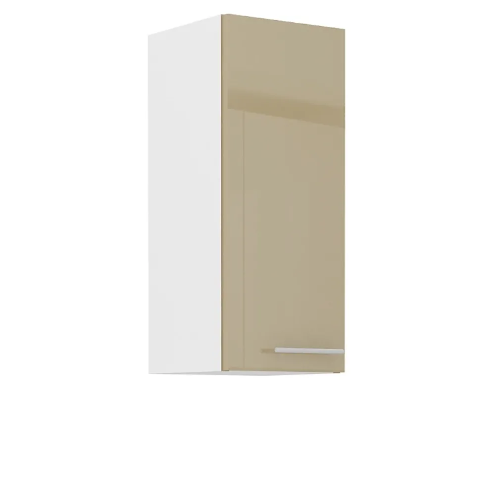 - Front szafki kuchennej wykonany jest z płyty MDF w trzech kolorach wykończonych na wysoki połysk: biały, szary oraz cappucino.