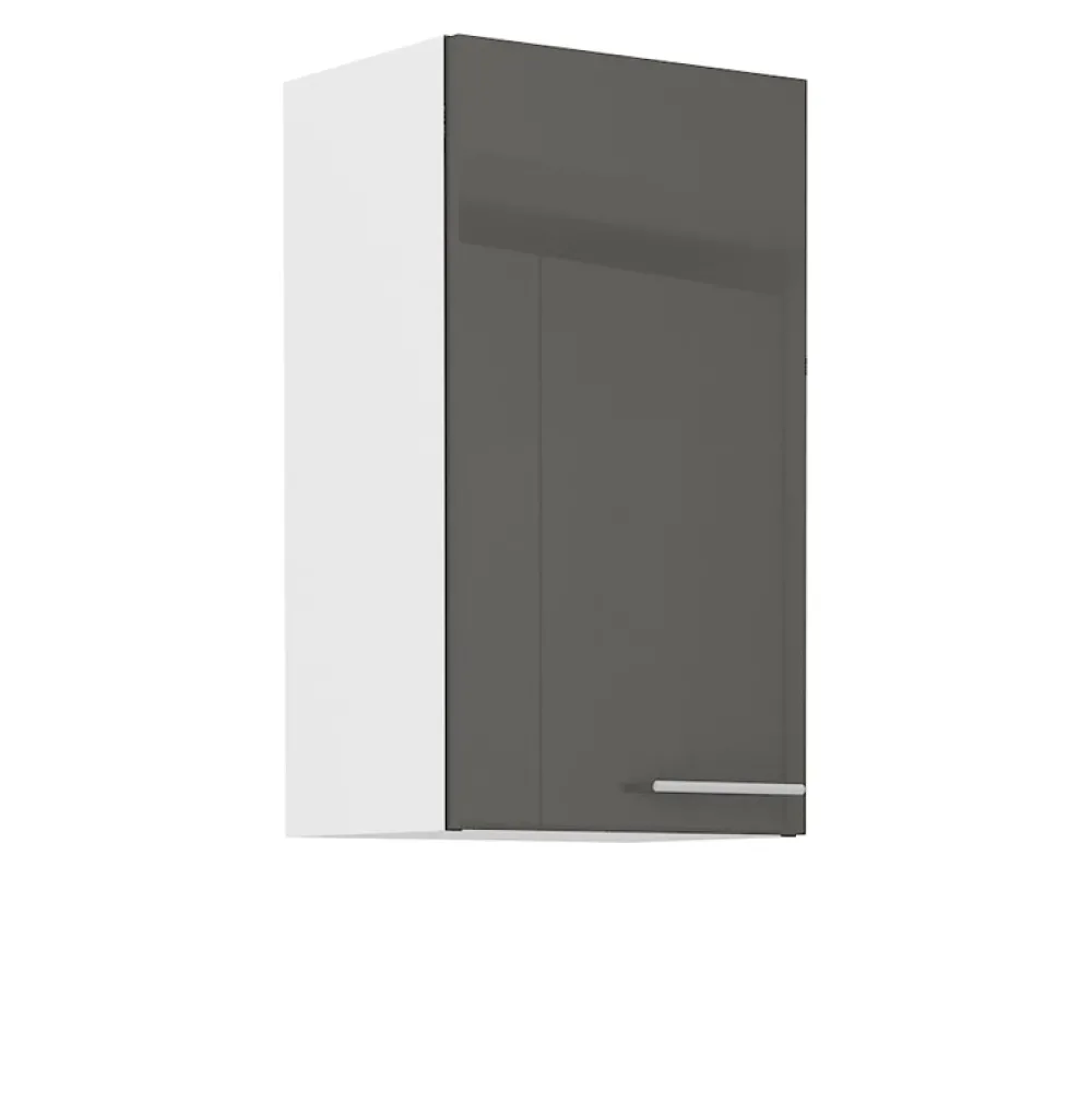 - Front szafki kuchennej wykonany jest z płyty MDF w trzech kolorach wykończonych na wysoki połysk: biały, szary oraz cappucino.