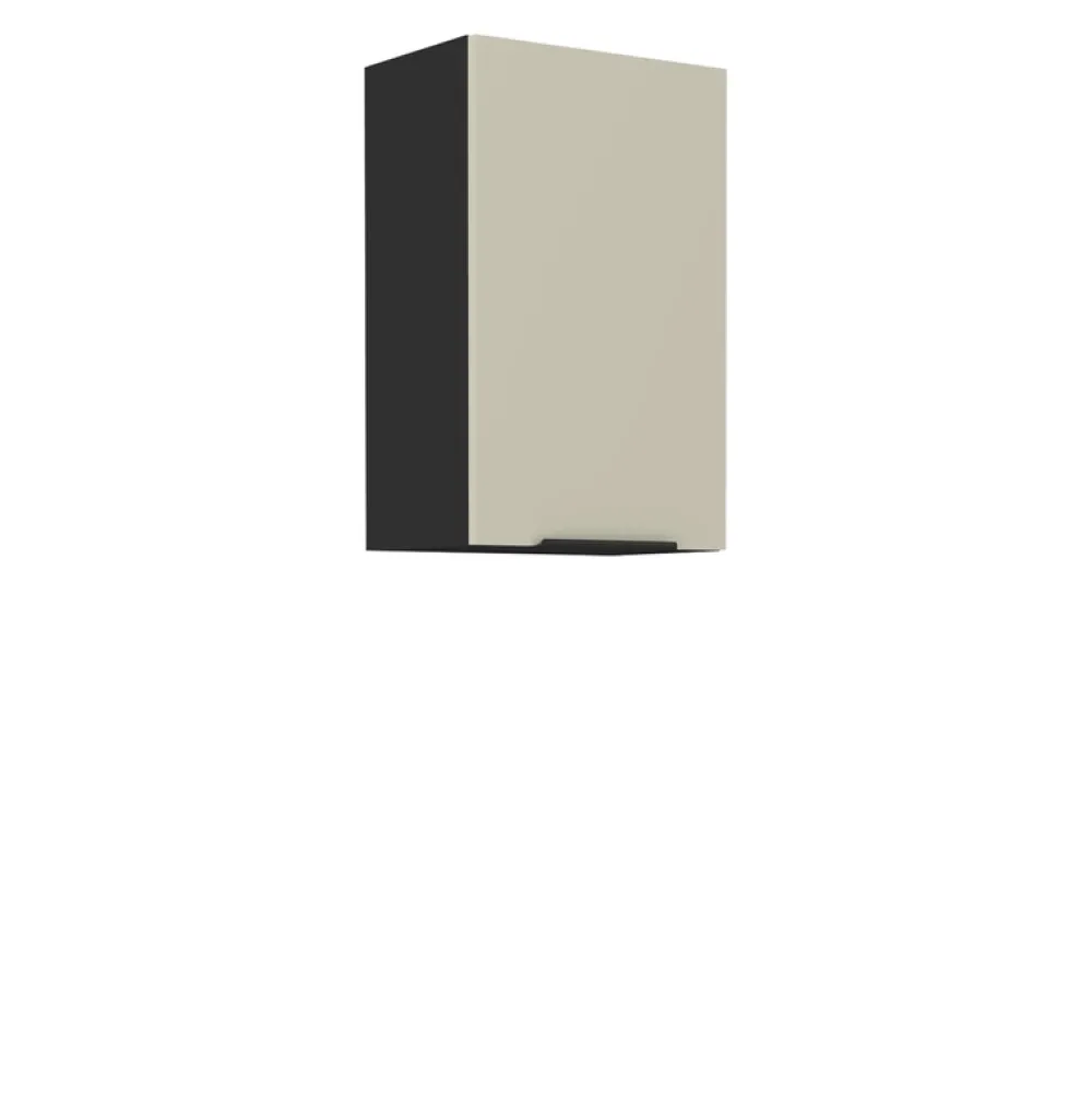 - Górna szafka kuchenna o szerokości 45 cm ANES zapewni Ci łatwy dostęp do przechowywanych kuchennych niezbędników. Wykonana została z płyty laminowanej o grubości 16 mm. Front w kolorze kaszmiru. Uchwyt z aluminium w kolorze czarnym.