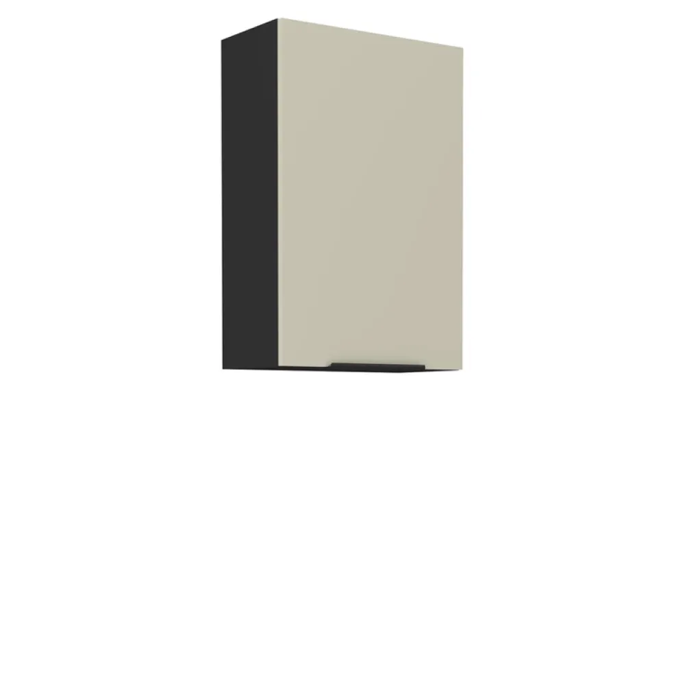 - Górna szafka wisząca 60 cm ANES idealnie dopełni całą aranżację oraz zapewni Ci łatwy dostęp do kuchennych niezbędników. Front w kolorze kaszmiru. Uchwyt z aluminium w kolorze czarnym. Wykonana została z płyty laminowanej o grubości 16 mm.