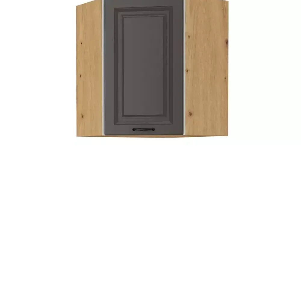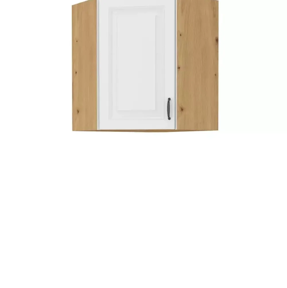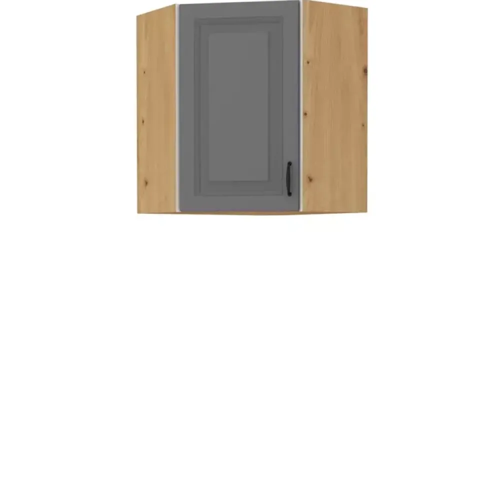 - Wisząca szafka narożna do kuchni wyposażona w dwie półki.