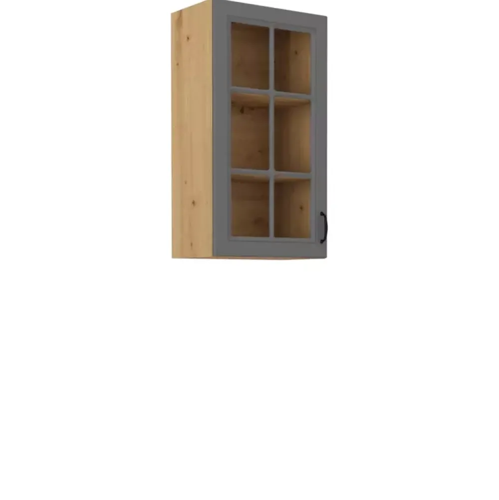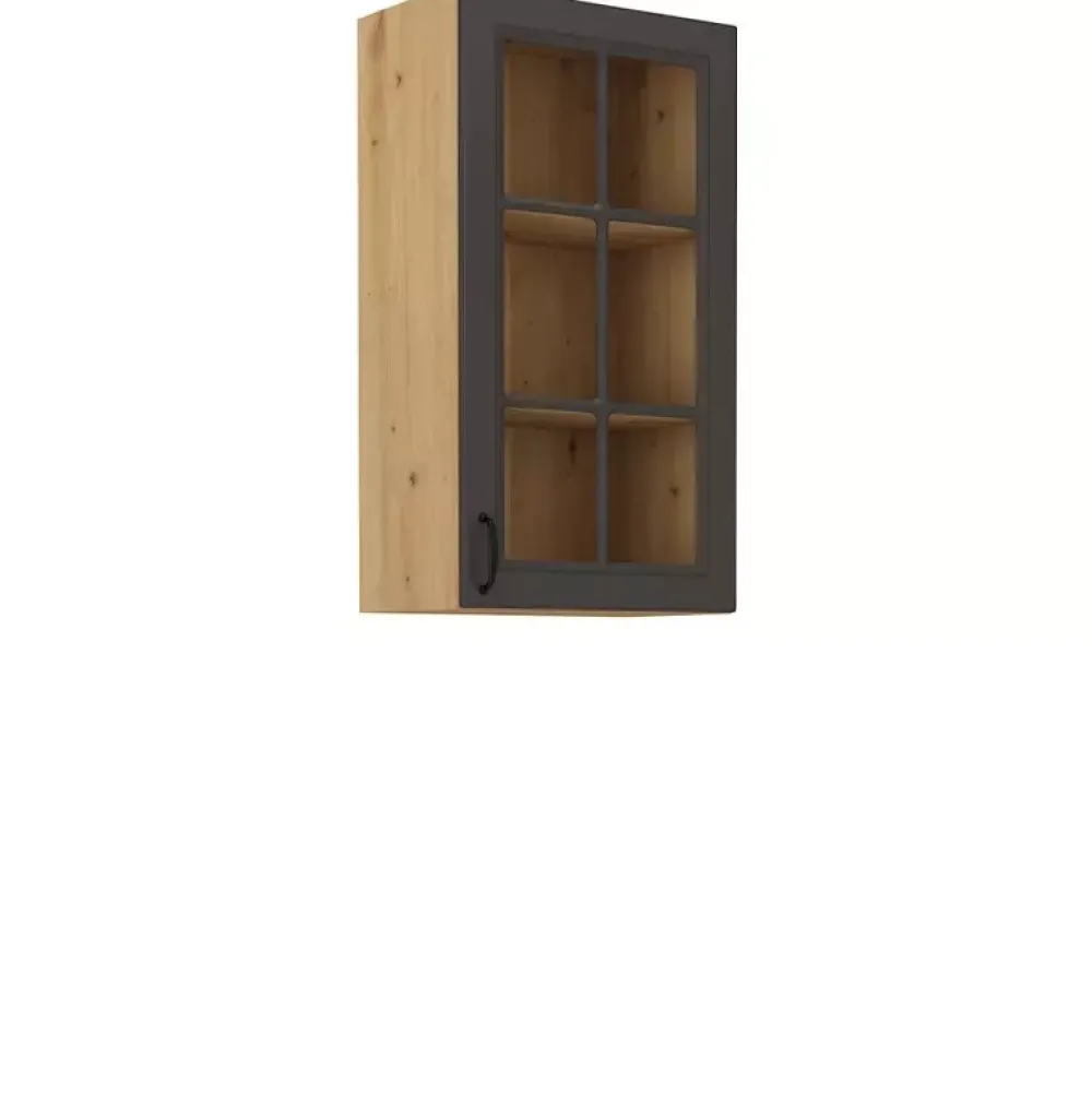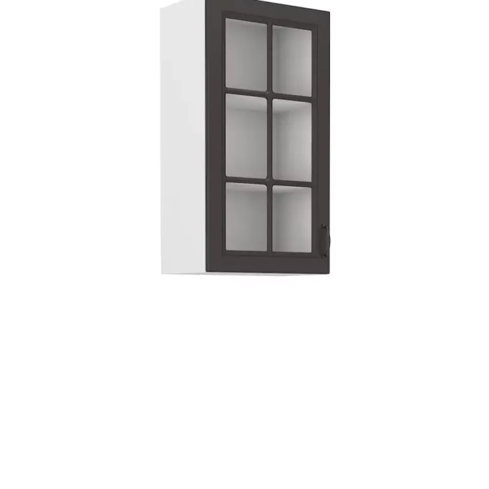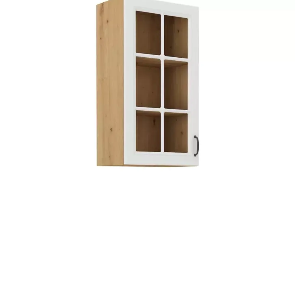 Wisząca szafka z przeszklonym frontem o szerokości 40 cm i wysokości 90 cm posiada trzy półki z płyty laminowanej. Szafka posiada zawiasy z mechanizmem cichego domykania, co gwarantuje delikatne zamykanie i otwieranie drzwi. Jeśli urządzasz kuchnię otwartą na salon, warto pomyśleć o podświetleniu szafki dostępnym w naszej ofercie oświetleniem square, co nada pomieszczeniu przytulnego klimatu. Wybierz odpowiadający Ci kolor korpusu i frontów, klikając przycisk „Dopasuj i kup”.