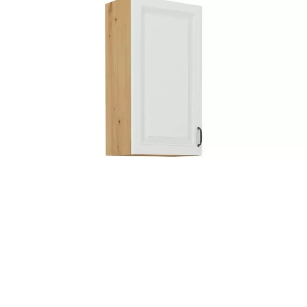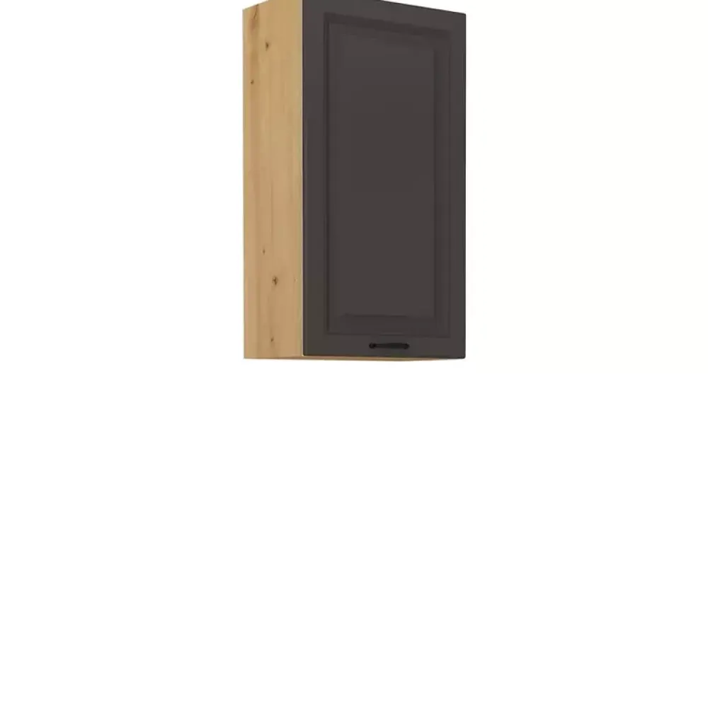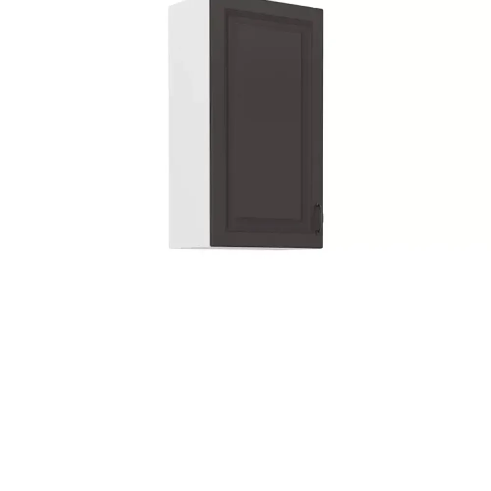 Wysoka szafka kuchenna o szerokości 50 cm posiada trzy półki z płyty laminowanej. Szafka ma tylko jeden front, który posiada zawiasy wyposażone są w system cichego domykania, co gwarantuje delikatne zamykanie i otwieranie drzwi. Wybierz odpowiadający Ci kolor korpusu i frontów, klikając przycisk „Dopasuj i kup”.
